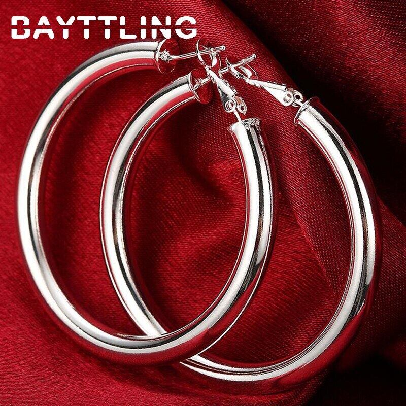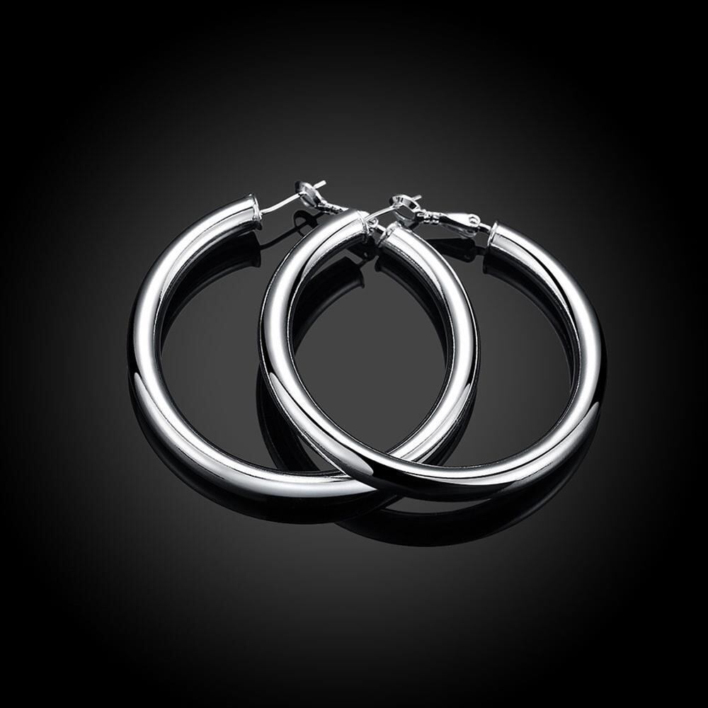送料無料 スターリングシルバー光沢のある50MMサークルラウンドイヤリング女性のパーティーギフトジュエリー 指輪 銀 アクセサリー AE1008842690392200