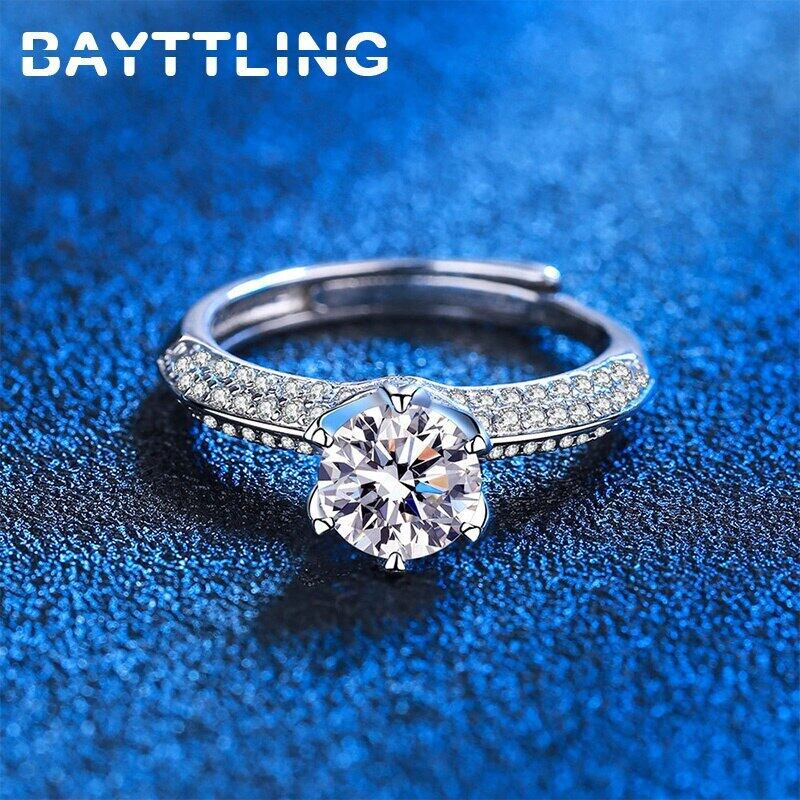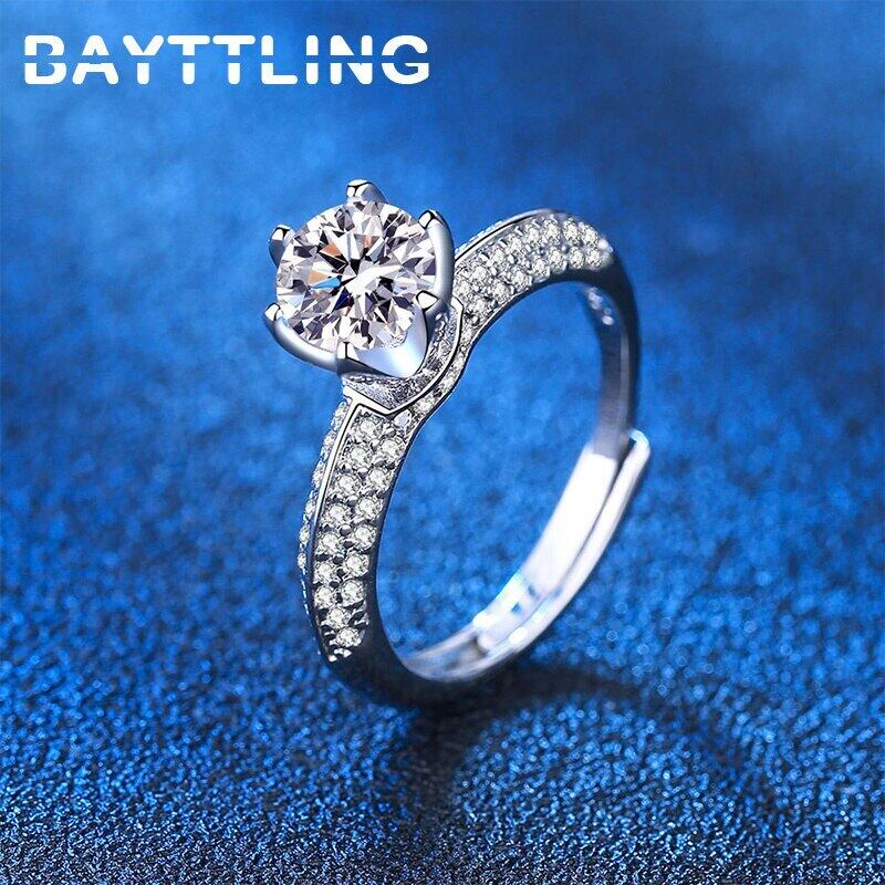 送料無料 BAYTTLINGシルバーカラーシャイニーラウンドジルコンオープンリングウーマンウェディングジュエリーカップルギフト 指輪 銀 アクセサリー AE1008862795185481