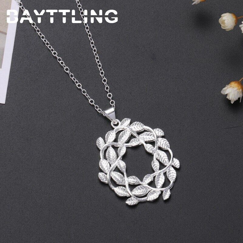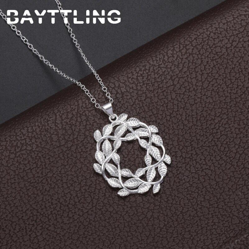 送料無料 BAYTTLINGシルバーカラー18インチラウンドフラワーペンダントネックレス女性ジュエリーギフト レース フラワーデザイン 銀 アクセサリー AE100881994535174