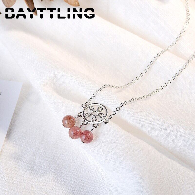 送料無料 BAYTTLINGシルバーカラーラグジュアリーストロベリークリスタルラウンドペンダントネックレスウーマンパーティーウェディングジュエリーギフト レース 銀 アクセサリー AE1008871477608845