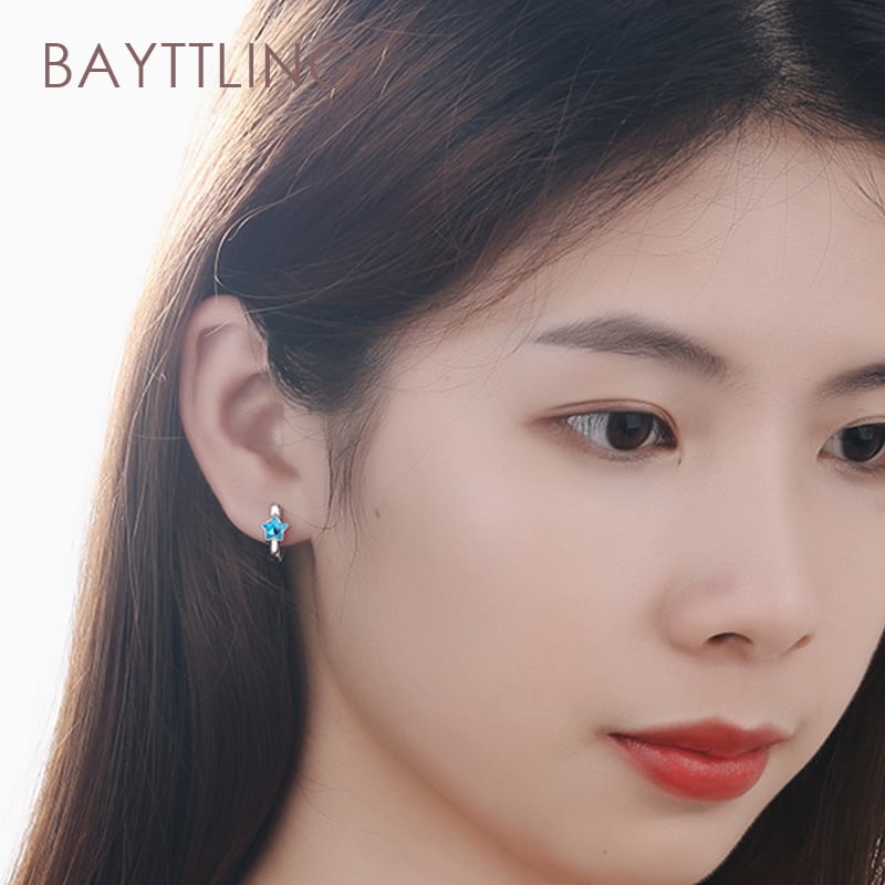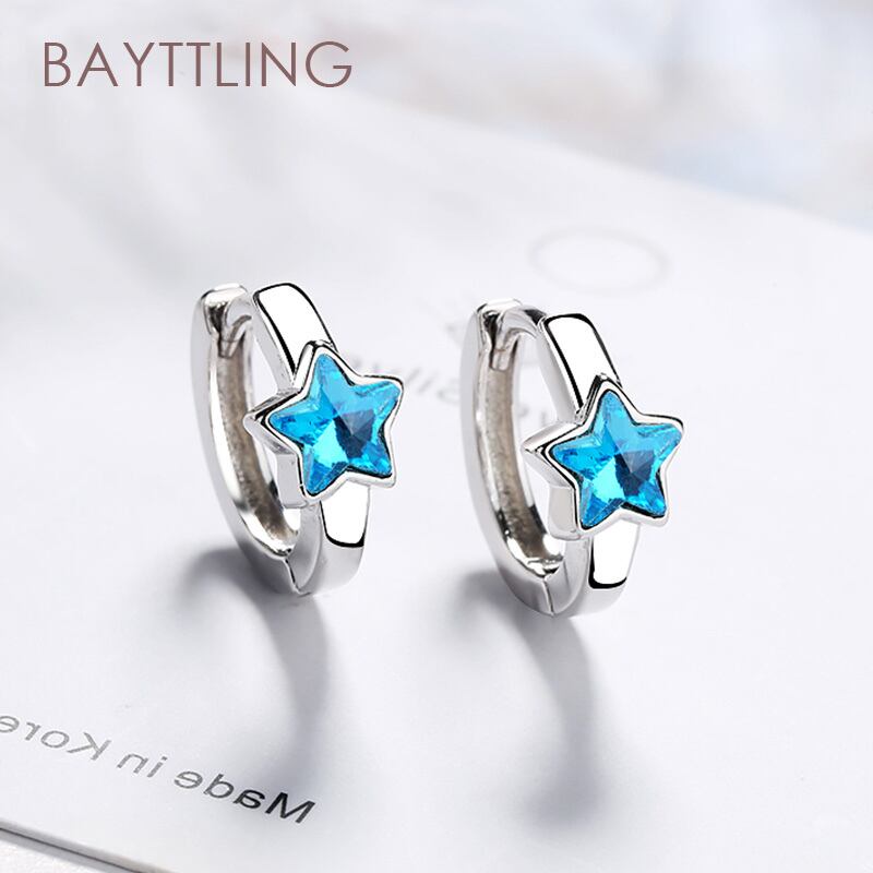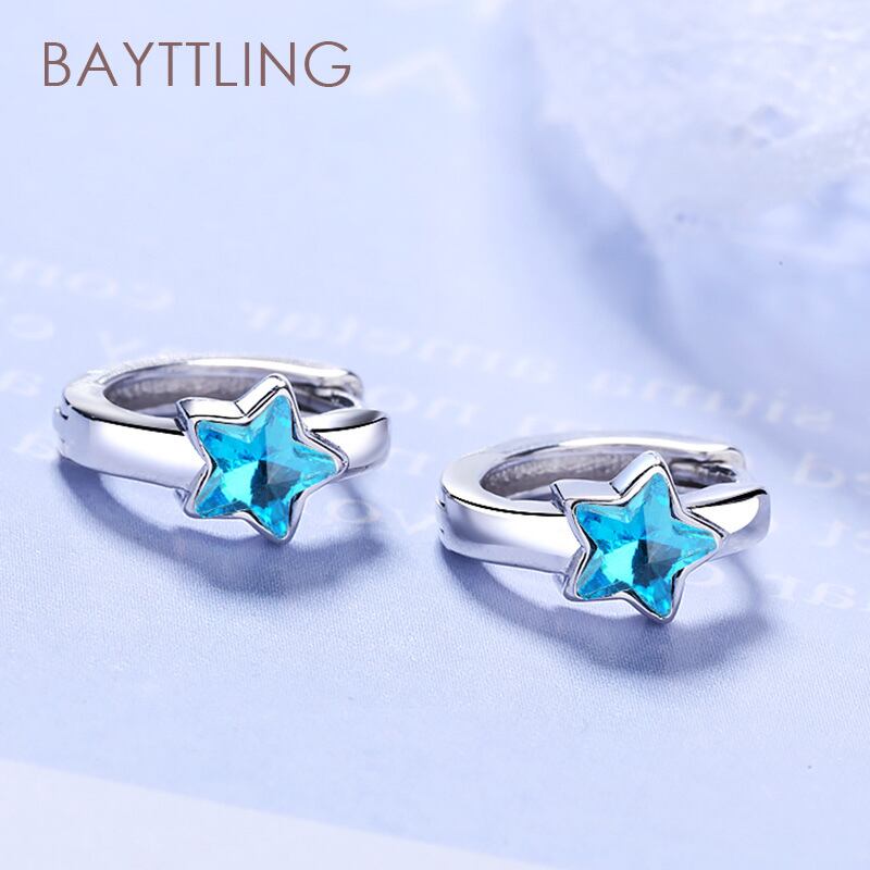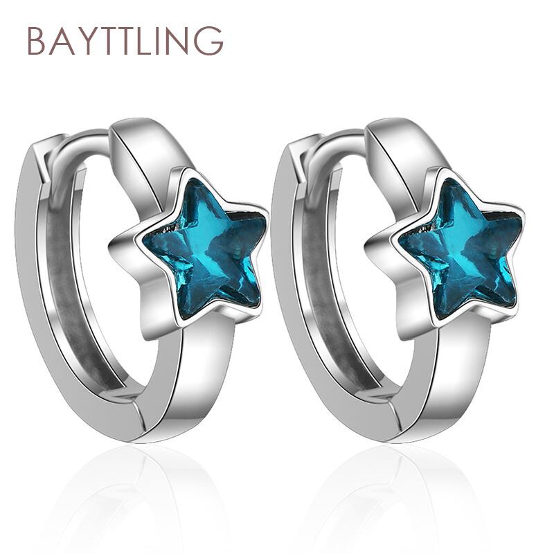 送料無料 BAYTTLING6MMシルバーカラーファインブルージルコンスターフープピアス女性パーティーウェディングジュエリーギフト イヤリング リング 指輪 銀 アクセサリー AE1008822979282615