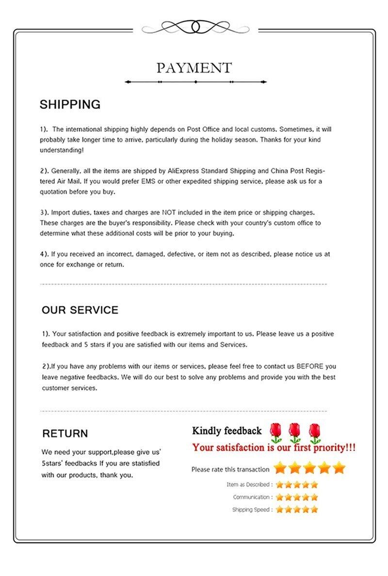 3)商品到着後に関して、サイズ変更、カラーやイメージが違う、実寸が違うなどのお客様都合での返品・交換は一切お受けしておりません。そのような方のご購入は予めご遠慮下さい。