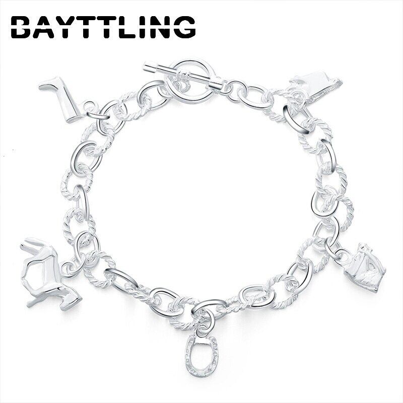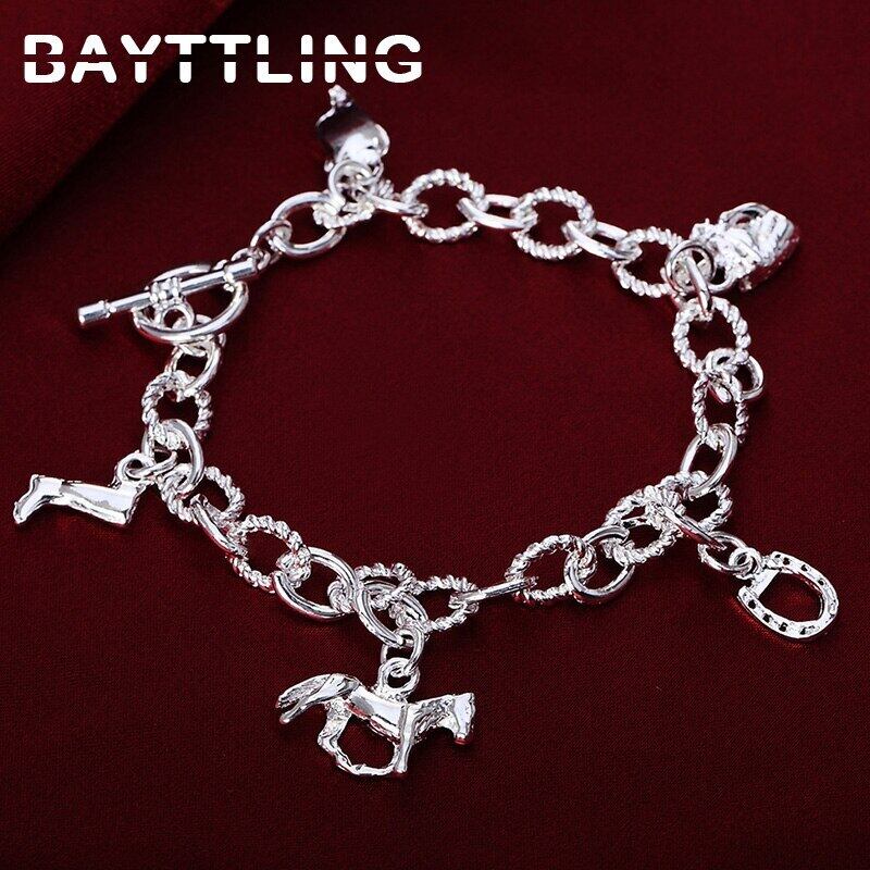 送料無料 BAYTTLINGシルバーカラーファイン8インチチェーンホースシューブレスレット女性高級パーティーギフトジュエリー 銀 アクセサリー AE100887663651202