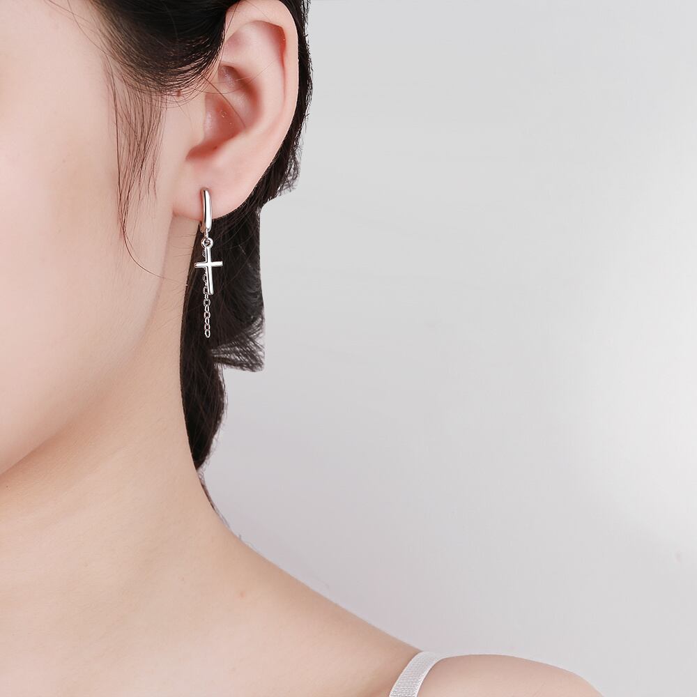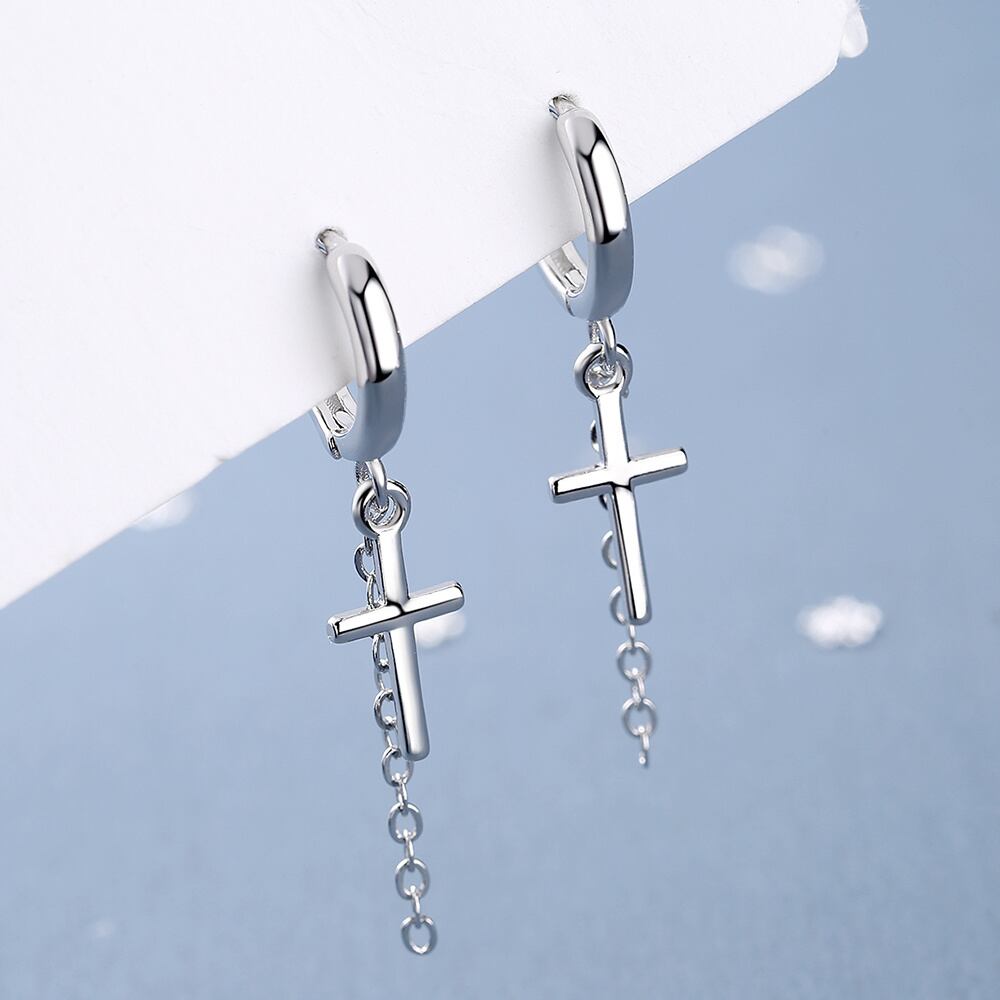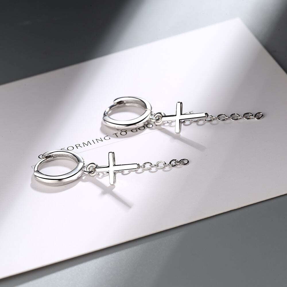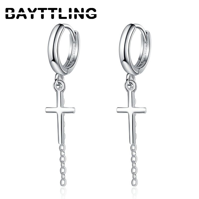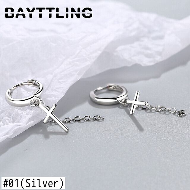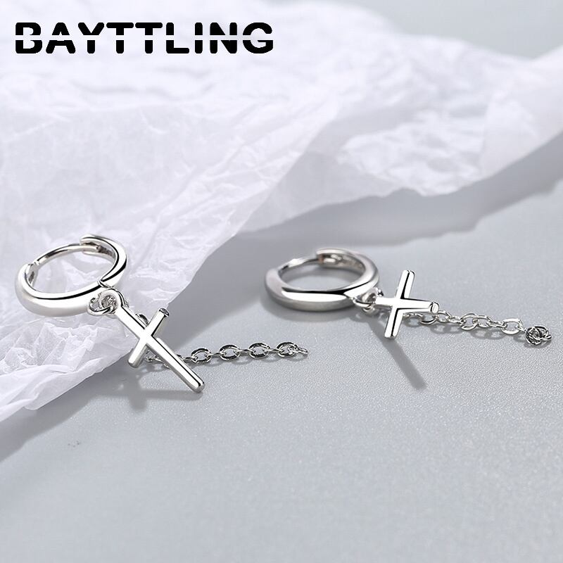 送料無料 BAYTTLINGシルバーカラークロスペンダントイヤリング女性Telリンクチェーンイヤリングウェディングジュエリーギフト 指輪 銀 アクセサリー AE1008815367019682