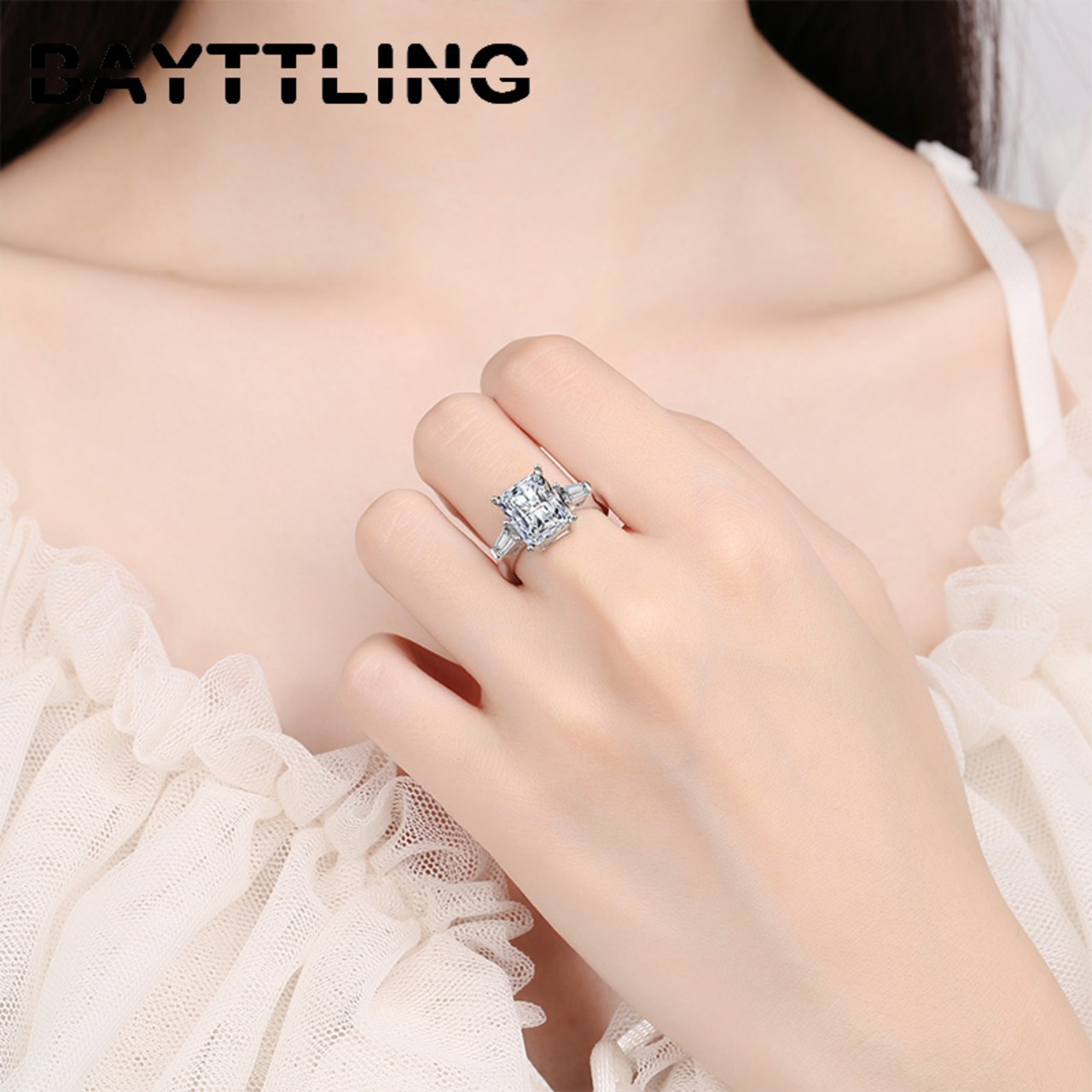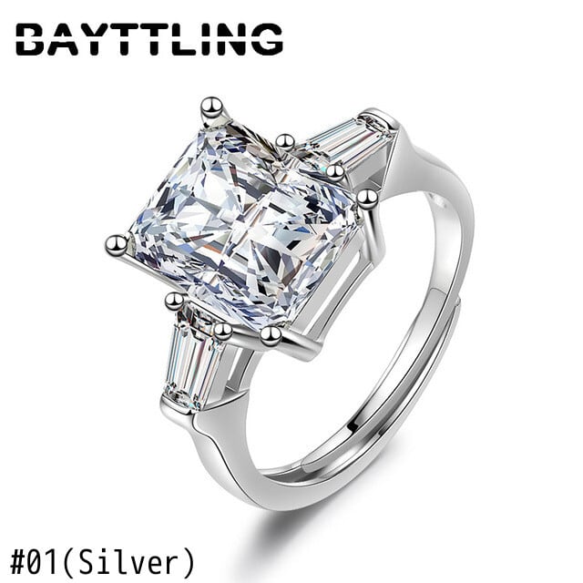 送料無料 BAYTTLINGシルバーカラーシンプルスクエアビッグジルコンオープンリングウーマンウェディングパーティーギフトジュエリー 指輪 銀 スクウェア アクセサリー AE1008880652498843
