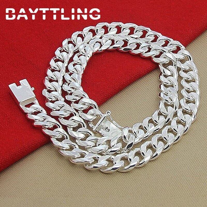送料無料 BAYTTLINGシルバーカラー10MM20/22/24インチキューバチェーンネックレス女性男性ジュエリーパーティー誕生日プレゼント レース 銀 アクセサリー AE1008826371921094