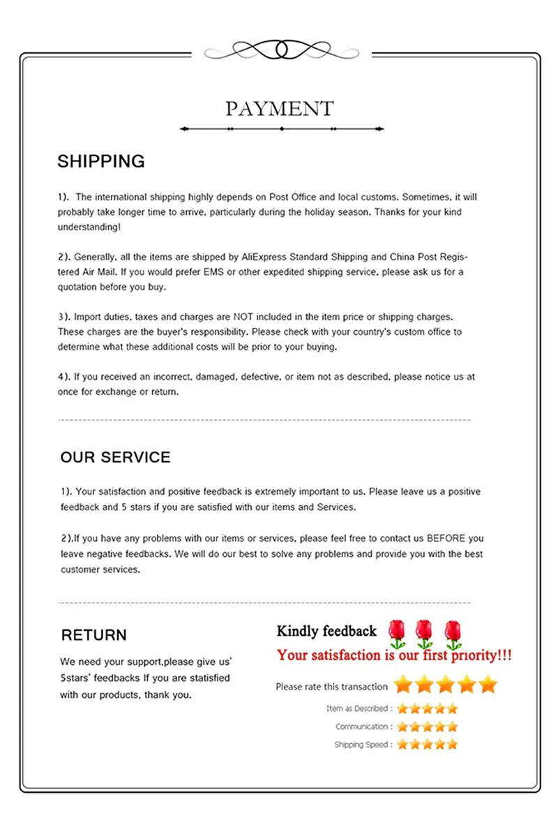 3)商品到着後に関して、サイズ変更、カラーやイメージが違う、実寸が違うなどのお客様都合での返品・交換は一切お受けしておりません。そのような方のご購入は予めご遠慮下さい。