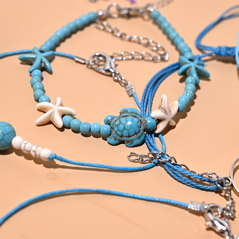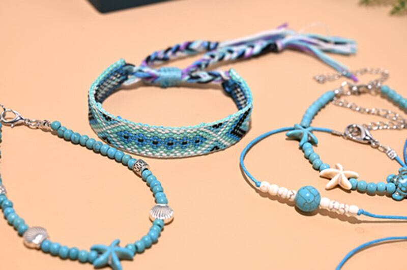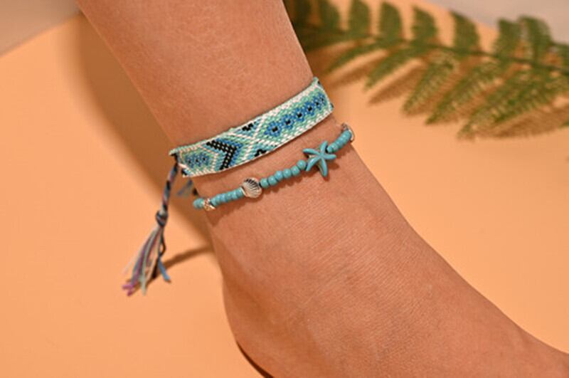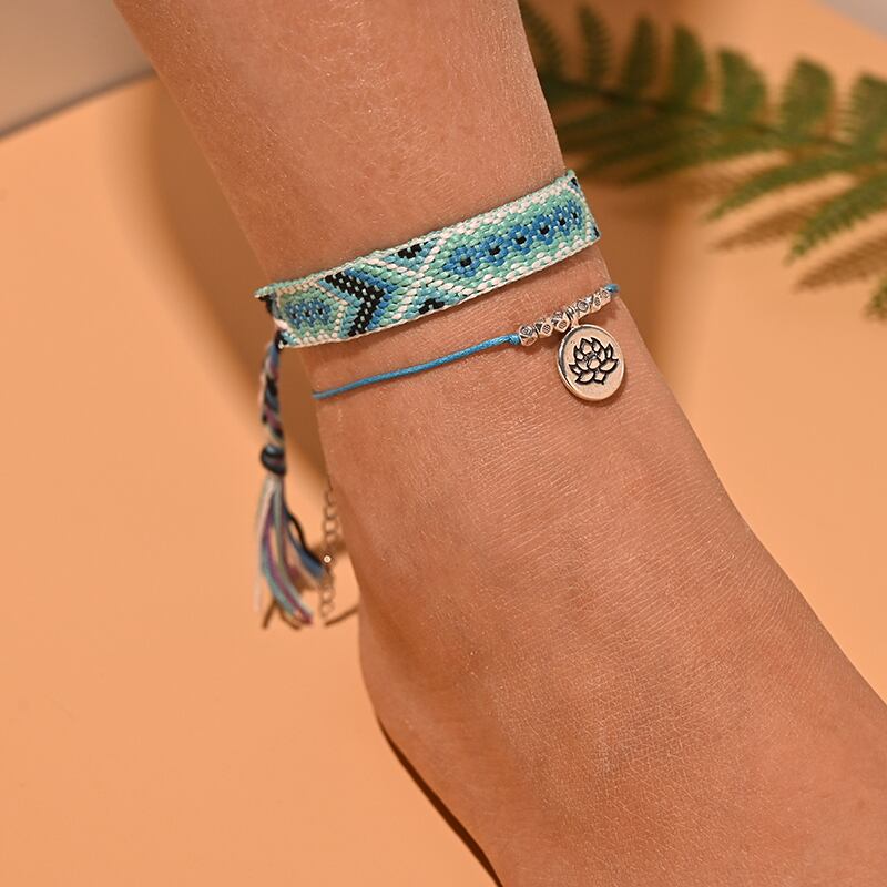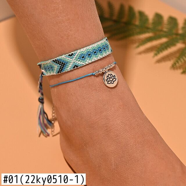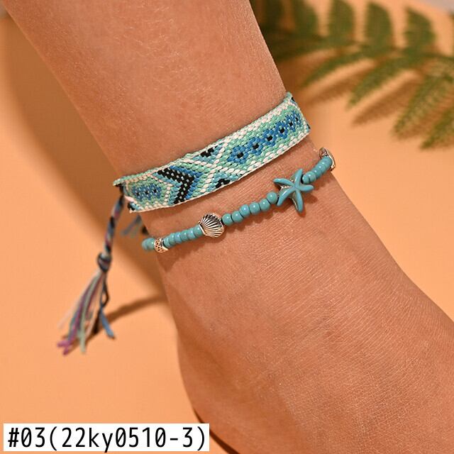 送料無料 2個/ロットビーズアンクレットセット女性手作りマクラメボヘミアンアンクレットブレスレットレッグフットチェーンストラップフレンドシップビーチジュエリー アクセサリー AE66555151694732