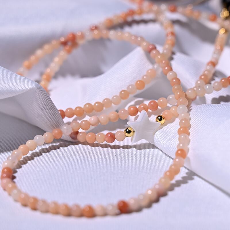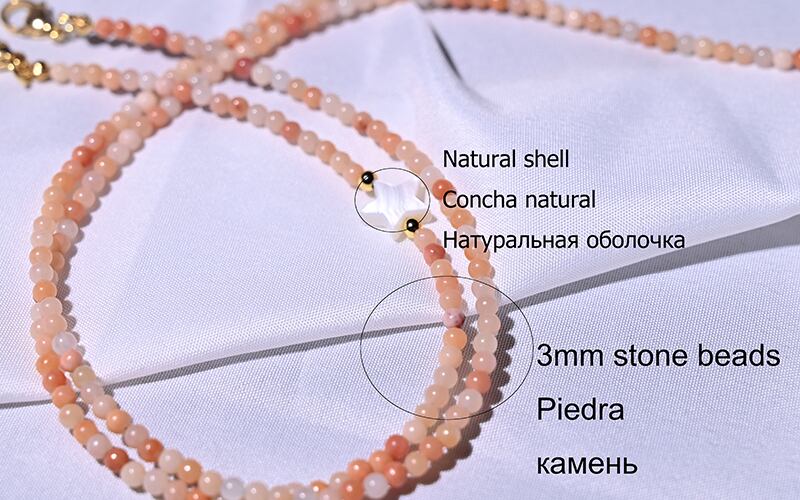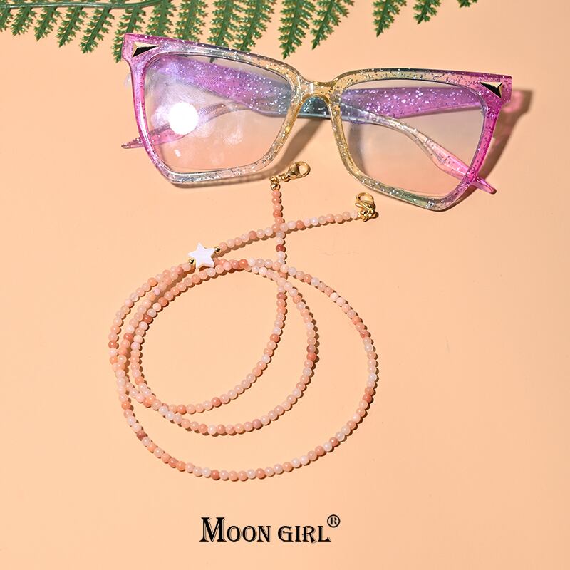 送料無料 ピンクアベンチュリンビーズチェーンシェルスターグレスチェーンホルダーチェーンマスクサングルストラップ女性ネックハンギングストラップ アクセサリー AE665523471627884