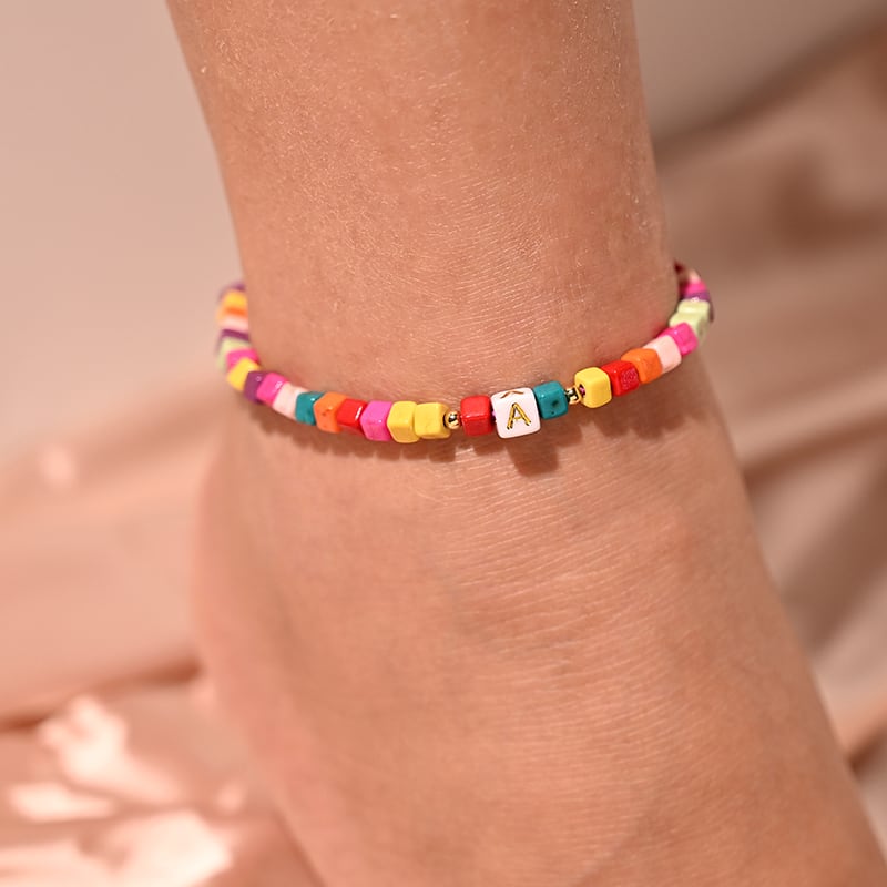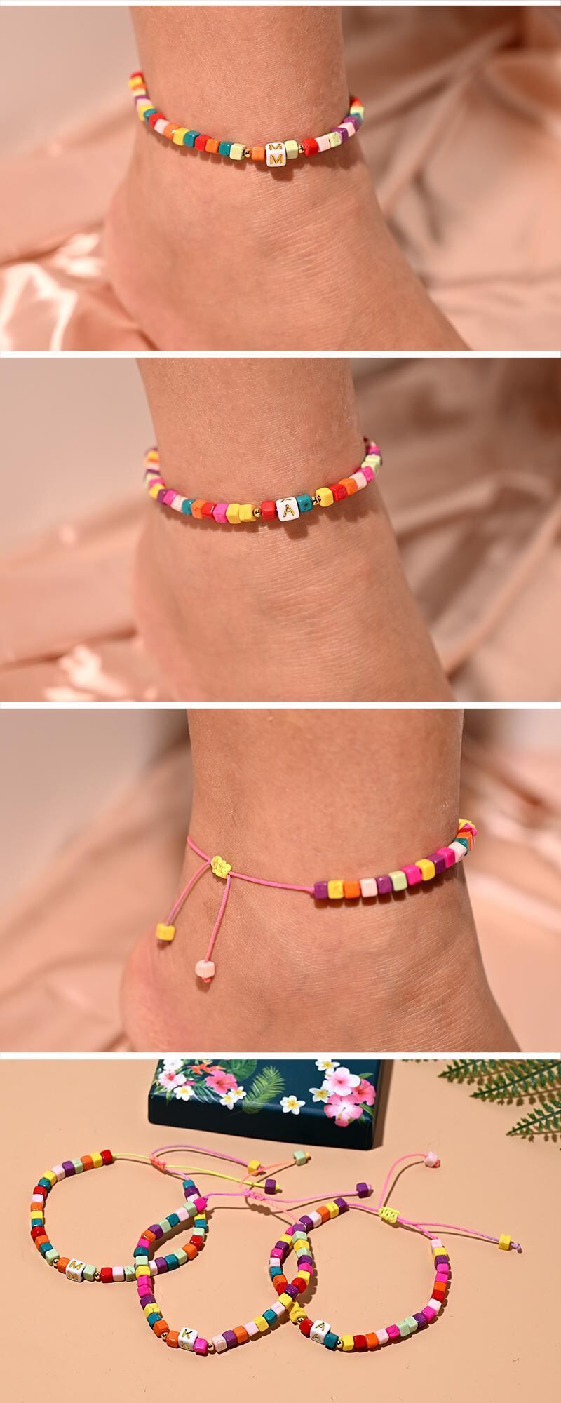 送料無料 カラフルなイニシャルアンクレットブレスレットオンザレッグ女性アジャスタブルアンクレット裸足レッグチェーンビーチジュエリー アクセサリー AE66556512993729