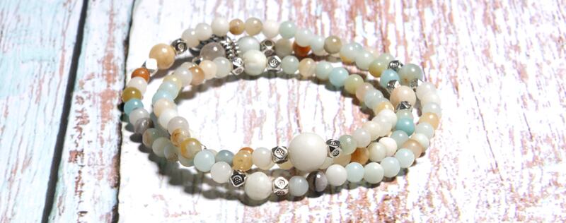 送料無料 マラビーズマントララップブレスレットヨガ4MMアマゾナイトストーンストレッチロータスチャームブレスレット女性 アクセサリー AE665547453980507