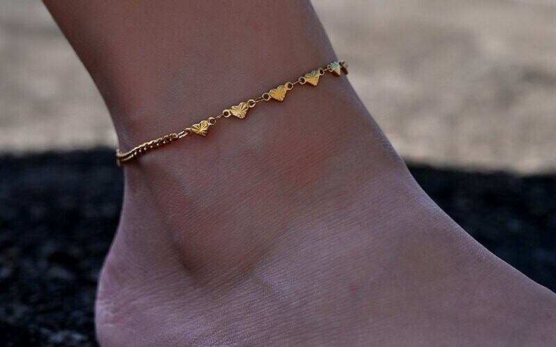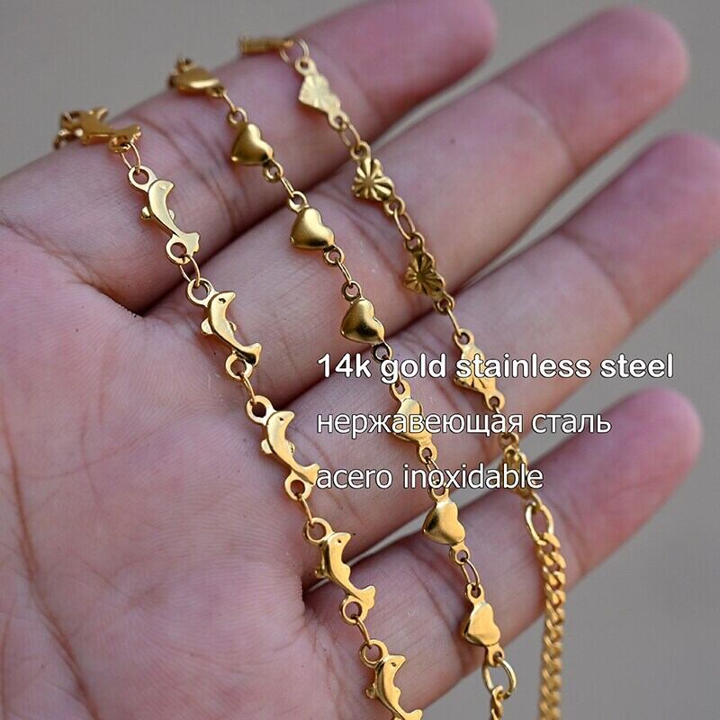 送料無料 ゴールドメッキステンレススチールチェーンアンクレットハートドルフィンレターウィメンズビーチベアフットブレスレットレッグチェーン自由奔放に生きるフットジュエリー アクセサリー AE665512346541264