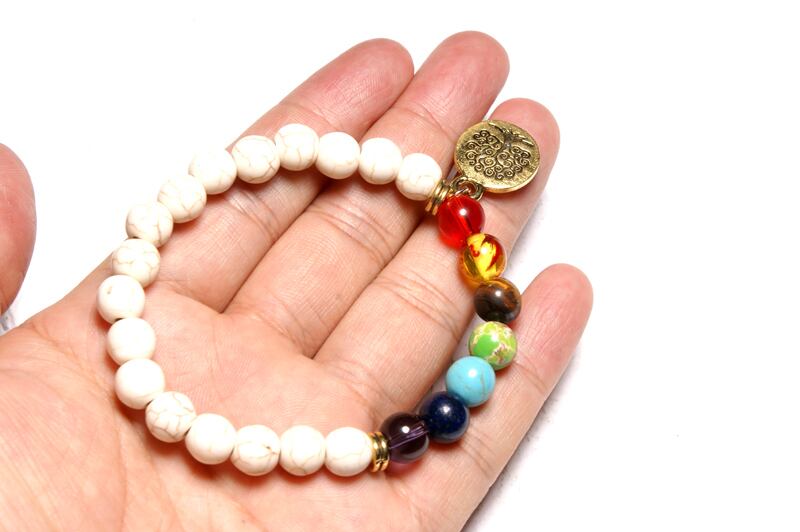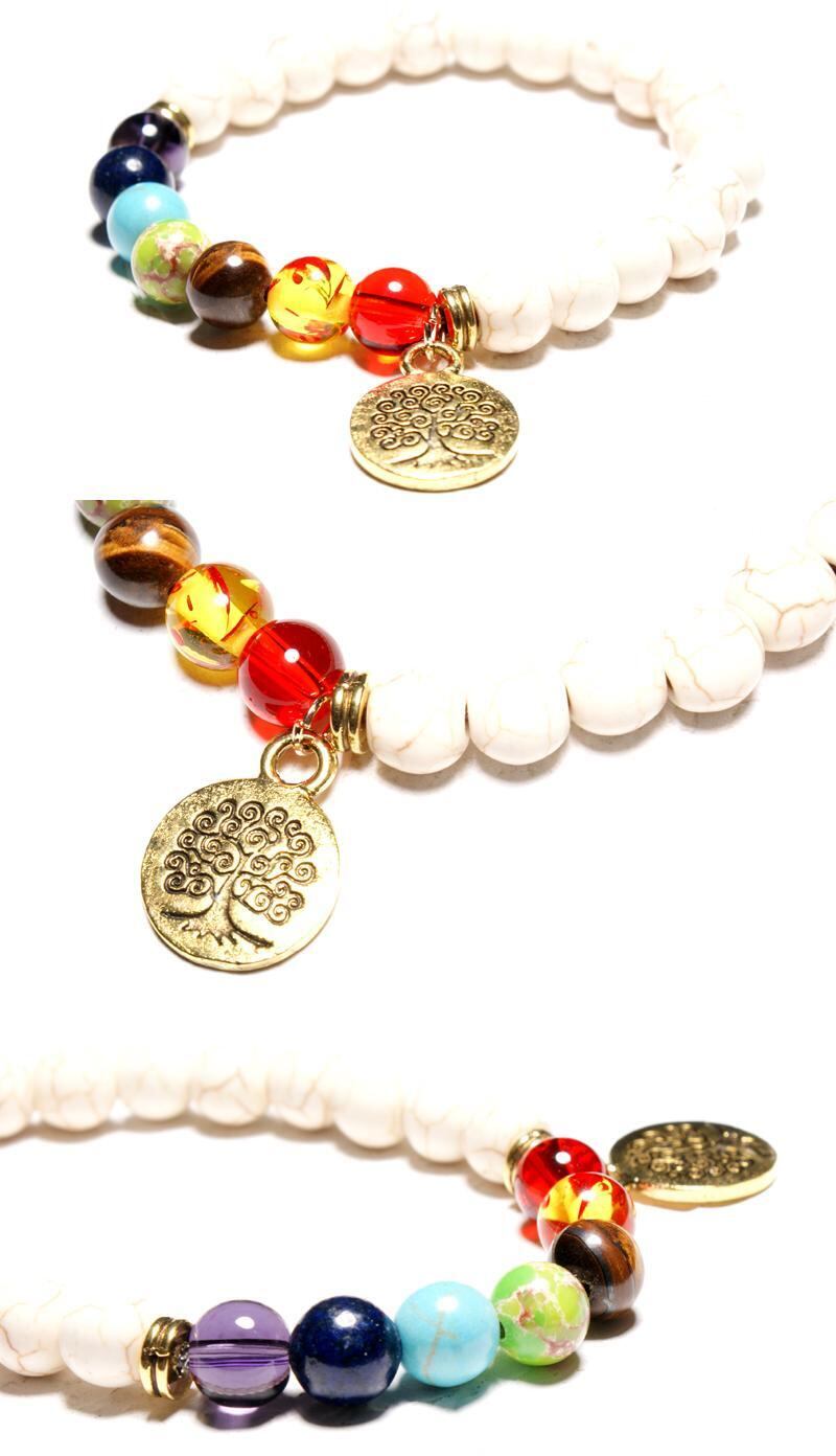 送料無料 7チャクラ生命の木ヨガブレスレット女性ストレッチヨガチャームバングル8mm天然石ヴィンテージPulserasジュエリー ナチュラル ビンテージ アクセサリー AE665582274954889