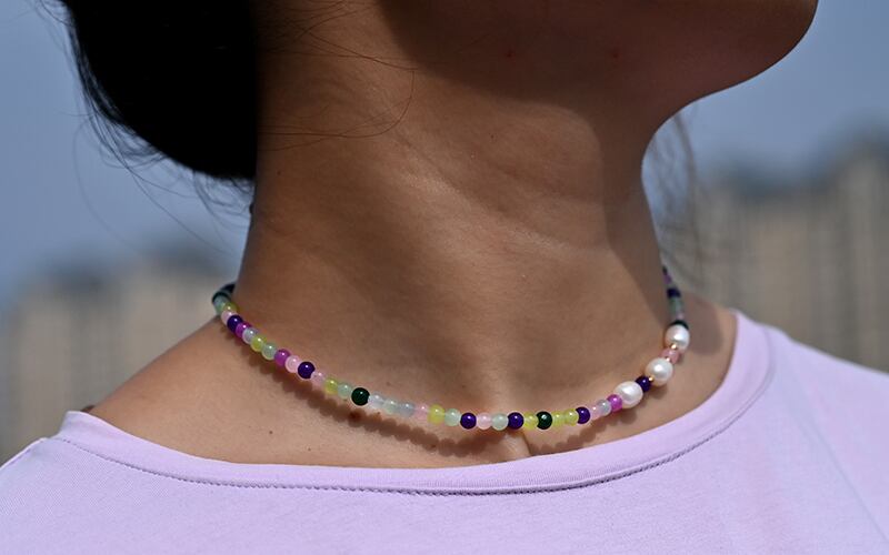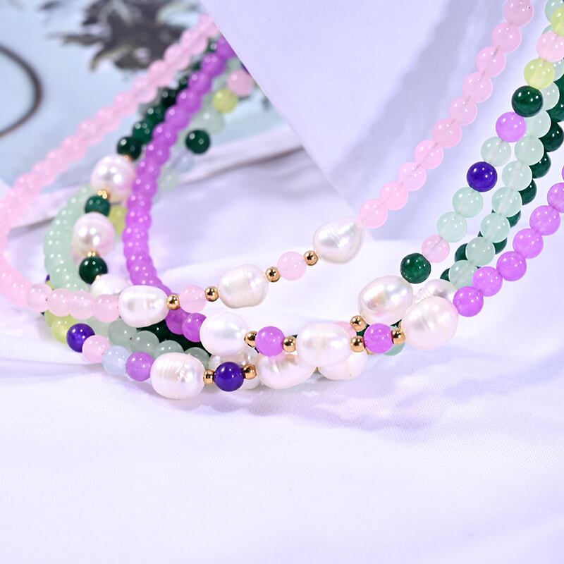 送料無料 4MMカルセドニーネックレス女性淡水パールチョーカージュエリー自由奔放に生きるステンレス鋼ストリートウェアコリアー レース 真珠 アクセサリー AE665591729076259
