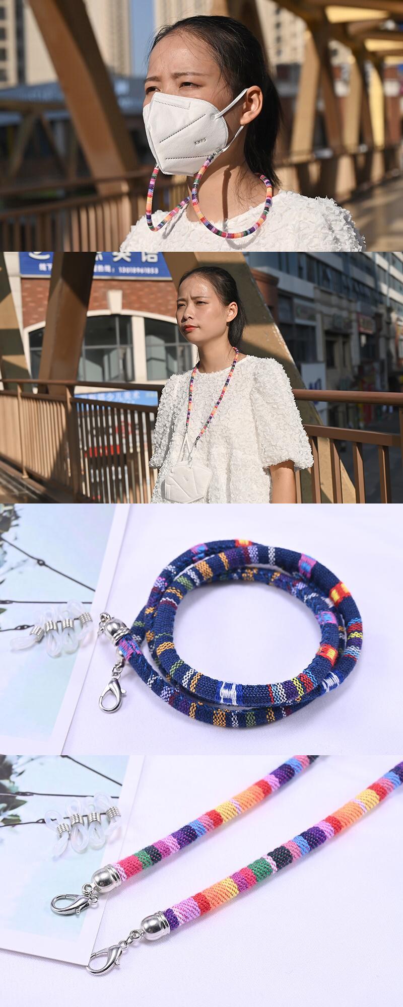 送料無料 ロープチェーンマスク女性ネックグレストラップフェイスマスクホルダーカラフルなアイグルサングルスペクタクルストラップ アクセサリー AE665587455908092