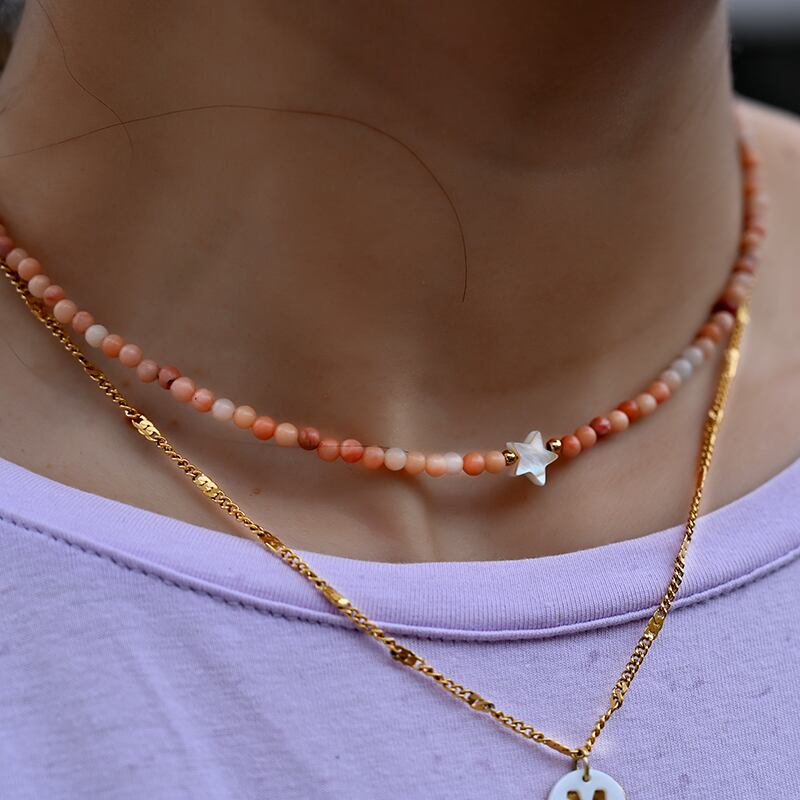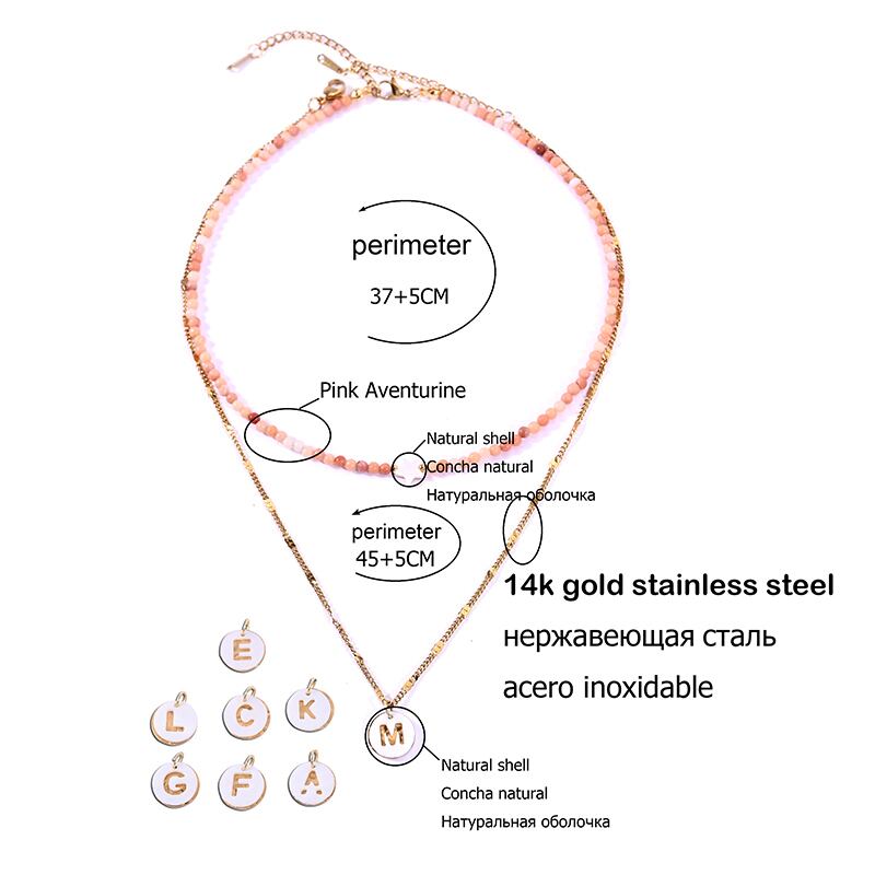送料無料 2個/ロットステンレススチールチェーンイニシャルネックレス女性天然石ビーズスターチョーカーシェルレターペンダントジュエリー レース ナチュラル アクセサリー AE665527967147468