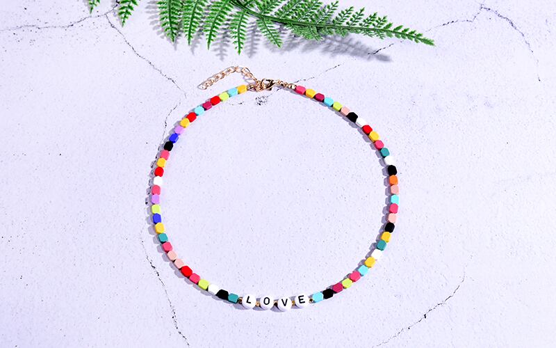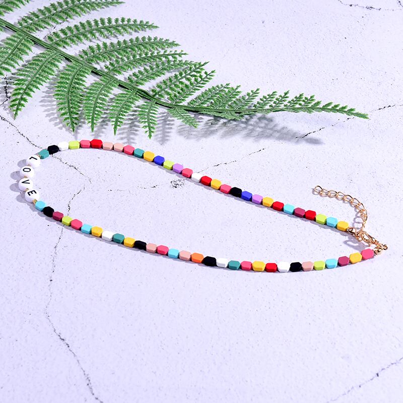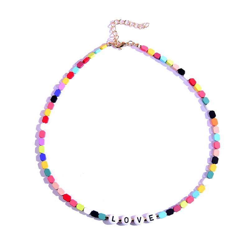 送料無料 幾何学的なビーズの名前ネックレス女性チョーカーゴス美的自由奔放に生きるカスタムレターヴィンテージカラフルなハッピーストリートウェアコリアー レース ビンテージ アクセサリー AE665549165696558