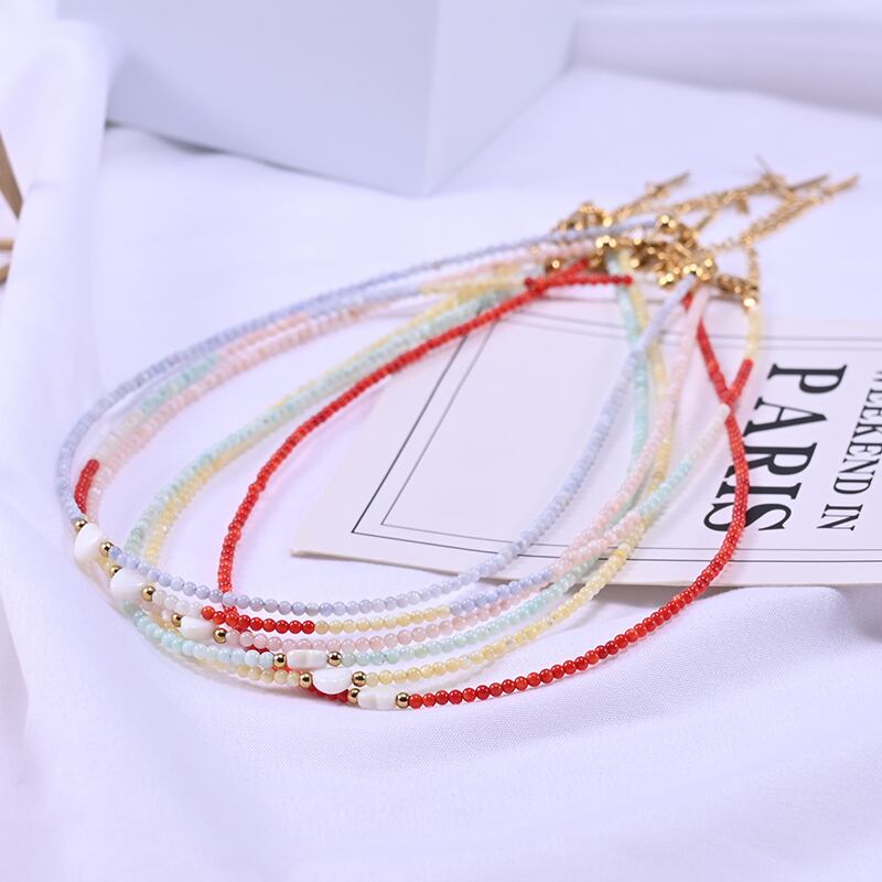 送料無料 ナチュラルハートシェルビーズチョーカーネックレスゴールドメッキステンレススチールネックレス女性自由奔放に生きるストリートウェアコリアー レース 天然 アクセサリー AE665522415788372