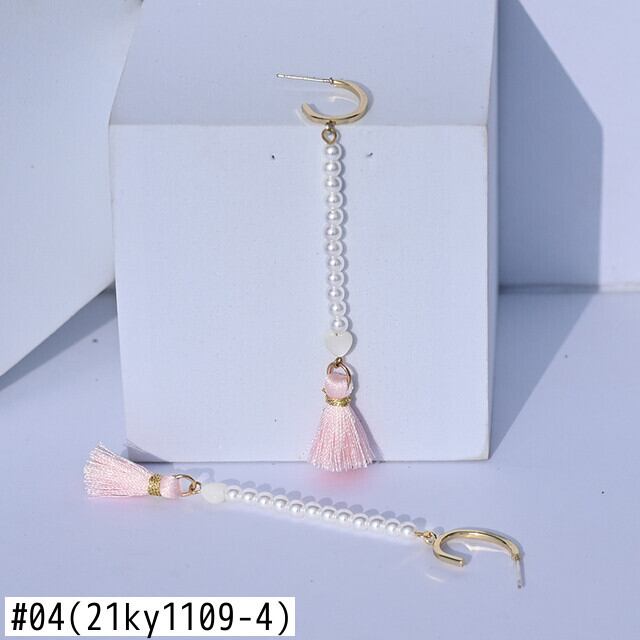 送料無料 シェルハートテルダングルピアス女性手作り4mmストーンビーズロングピアスかわいいジュエリームーンガール イヤリング 大人ガーリー スウィート キュート カジュアル リング 指輪 アクセサリー AE665533872804861