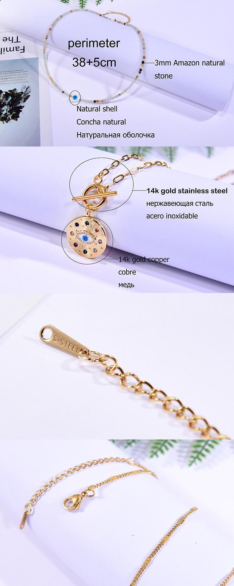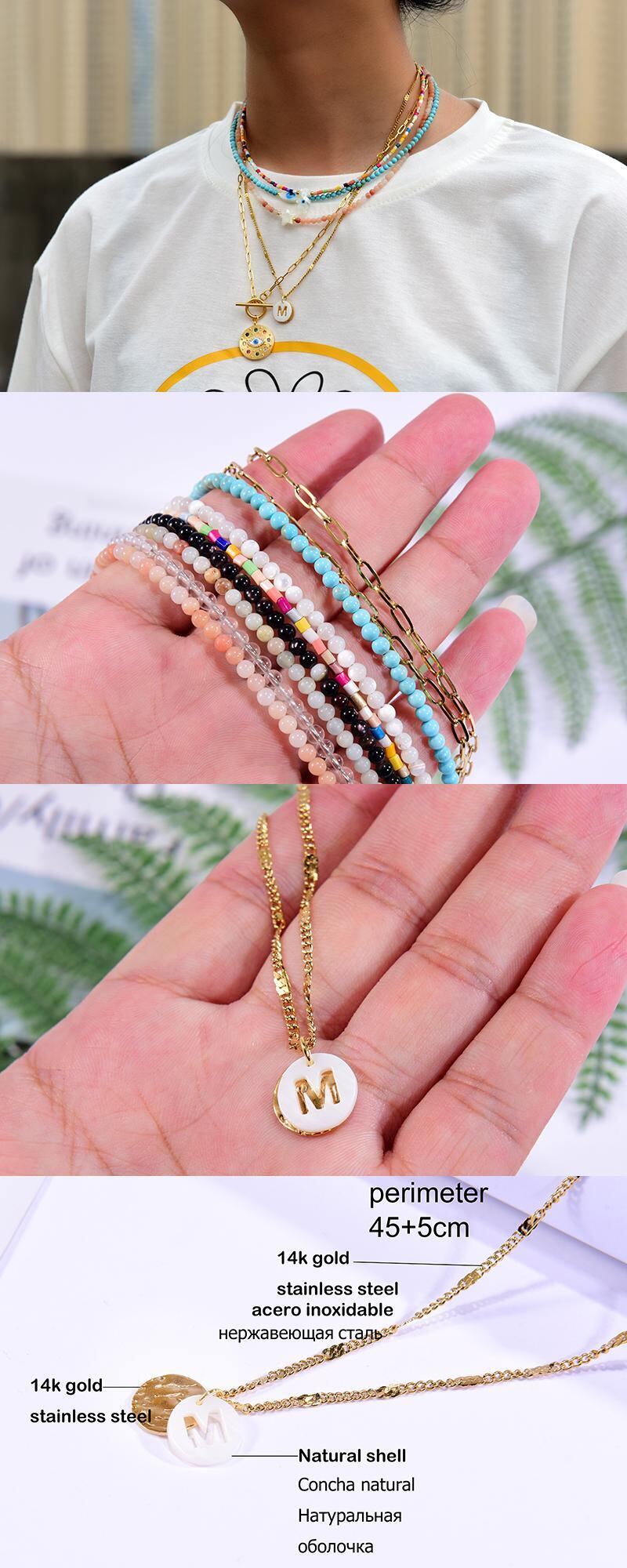送料無料 金メッキステンレス鋼イニシャルネックレス女性シェルレター邪眼天然石ペンダントチョーカージュエリー レース ナチュラル アクセサリー AE665514350884232