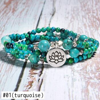 送料無料 MOONGIRL4mm天然石伸縮性女性ブレスレット108ロータスヨガマルチレイヤーブレスレットジュエリー ナチュラル アクセサリー AE665542648751957