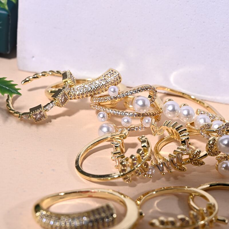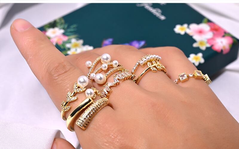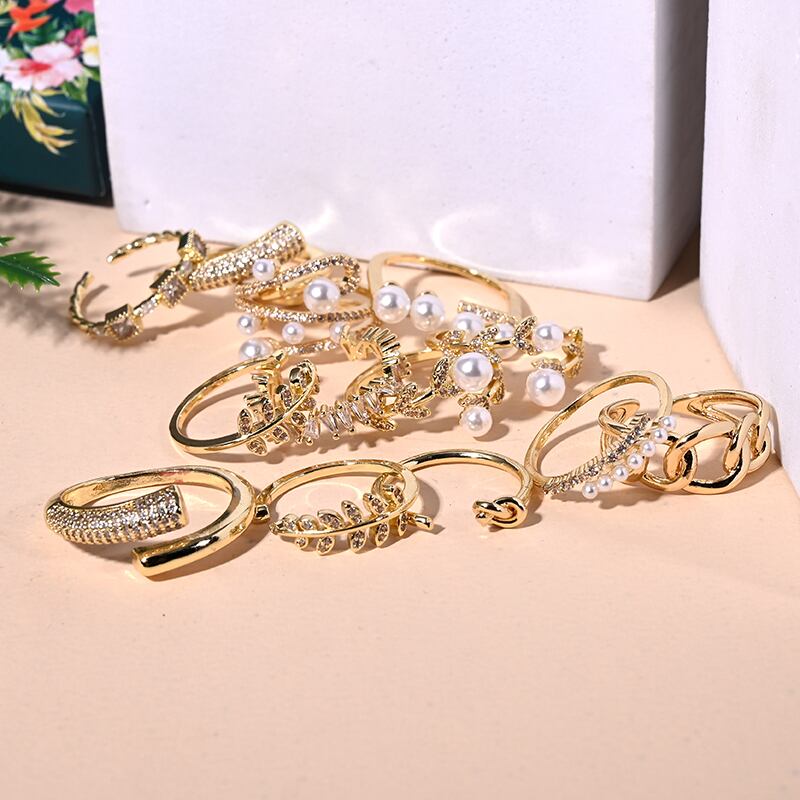 送料無料 金メッキパールオープニングリング女性高級ジルコン銅合金リングパーティー2022トレンドガールジュエリーギフトアクセサリー 指輪 真珠 アクセサリー AE665549227795465