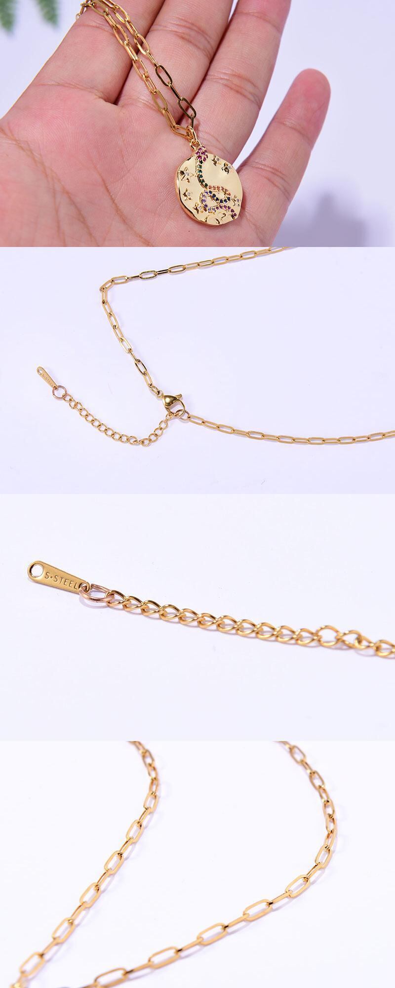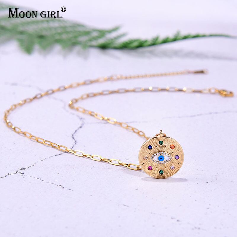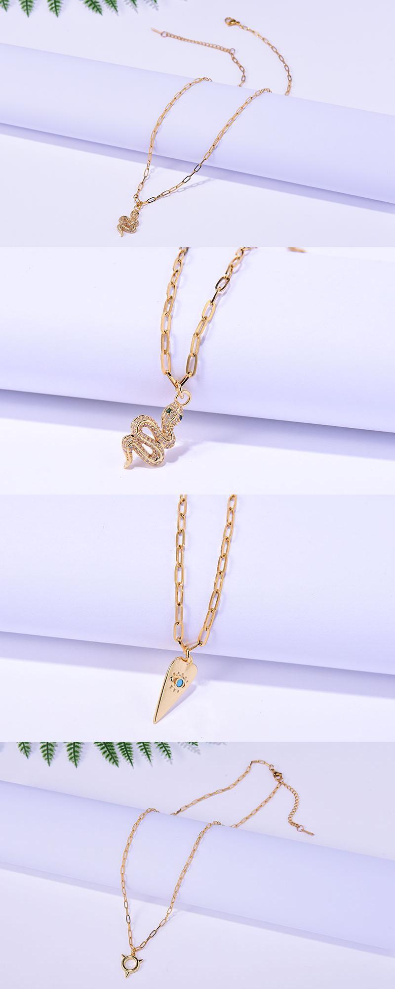 送料無料 ステンレススチールチェーンライトニングイービルアイペンダントネックレス女性トレンディなスネークムーンジルコンゴールドカラーパーティージュエリー レース アクセサリー AE665523565178006