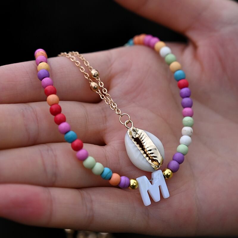 送料無料 3個/ロットイニシャルネックレス女性カラフルビーズラブレターチョーカーシェルペンダント自由奔放に生きるトレンディなジュエリーAccessoriec レース アクセサリー アクセサリー AE665577809950288