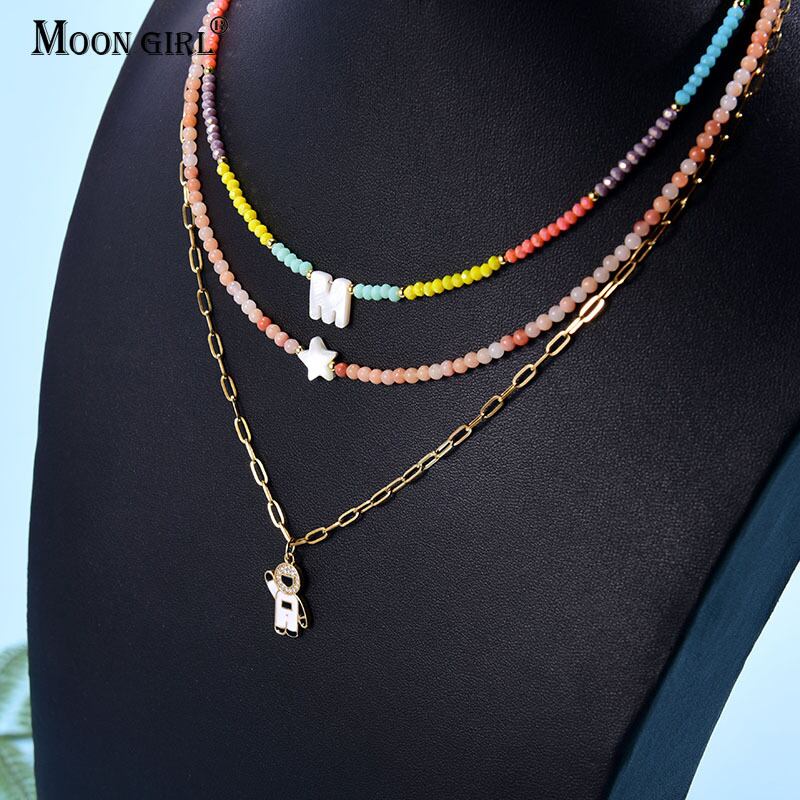 送料無料 名前イニシャルシェルレターペンダントネックレス女性クリスタル邪眼天然石ステンレス鋼チョーカージュエリー レース ナチュラル アクセサリー AE665564546496590