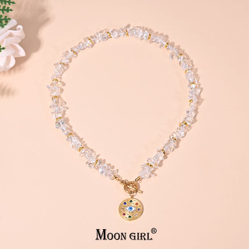 送料無料 MOONGIRL不規則なクリスタルビーズチョーカーネックレス女性はステンレス鋼のバックルゴールドカラーペンダントジュエリーを使用 レース アクセサリー AE665598419396999