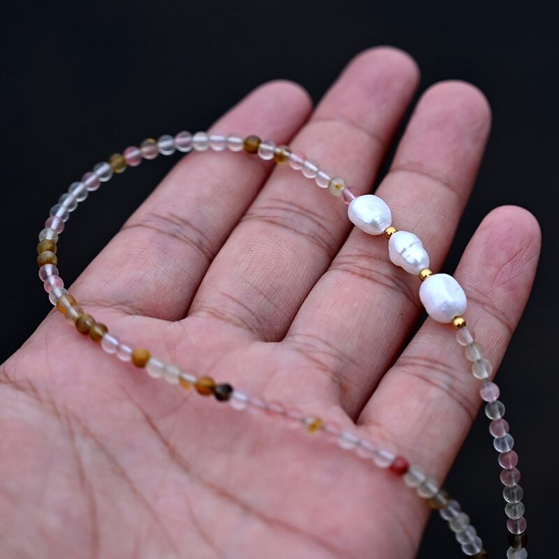送料無料 3MM天然石ビーズ淡水パールチョーカーネックレス女性ヴィンテージ自由奔放に生きる女性のネックチェーンジュエリーアクセサリー レース ナチュラル 真珠 ビンテージ アクセサリー AE665583775090530
