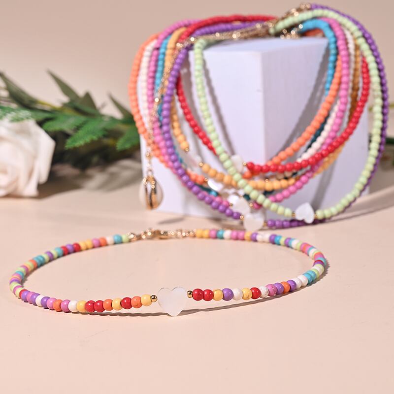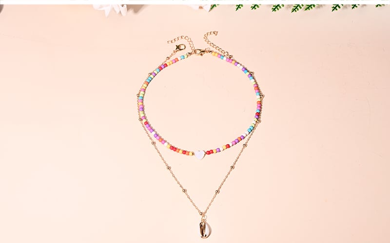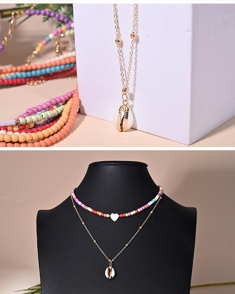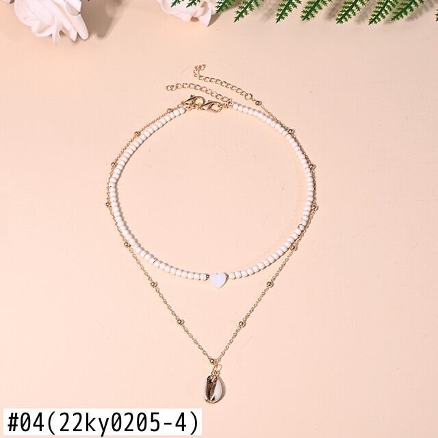 送料無料 2ピースマルチレイヤーハートチョーカーシェルペンダントネックレス女性ムーンガールジュエリー レース アクセサリー AE665558989822851