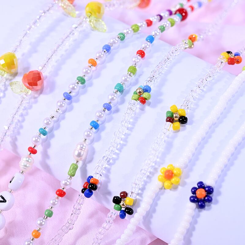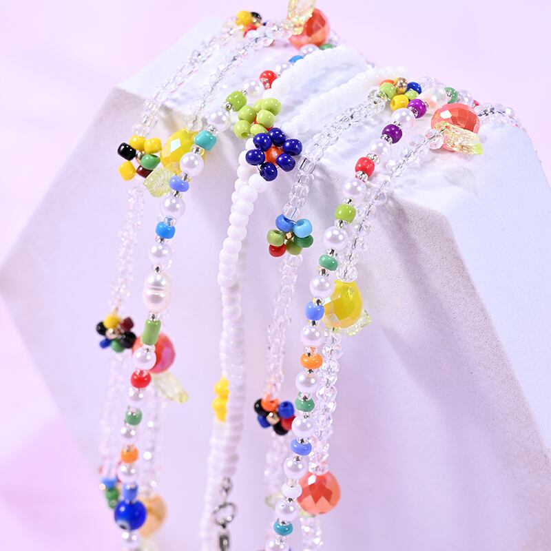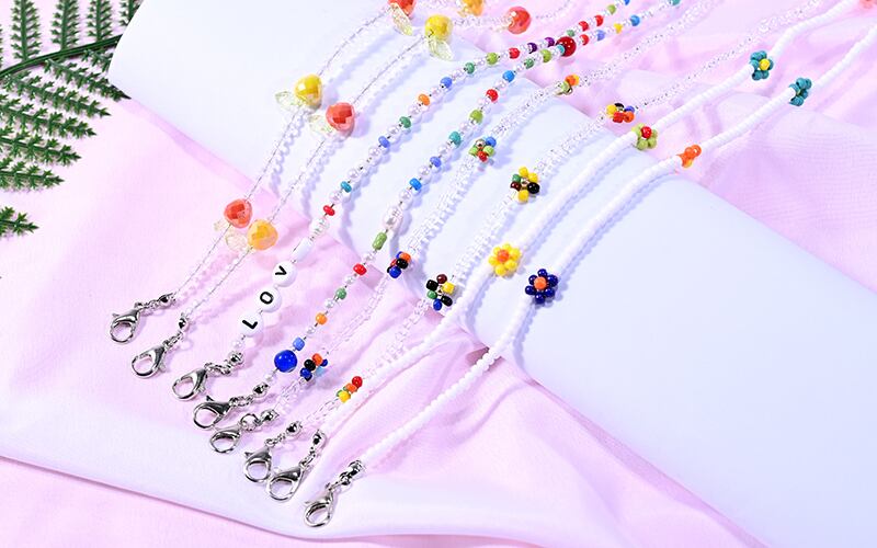 送料無料 カラフルなデイジーマスクチェーングレ女性ストラップネックレスサングルアイグルホルダー眼鏡コードアクセサリー レース アクセサリー AE665525424162918