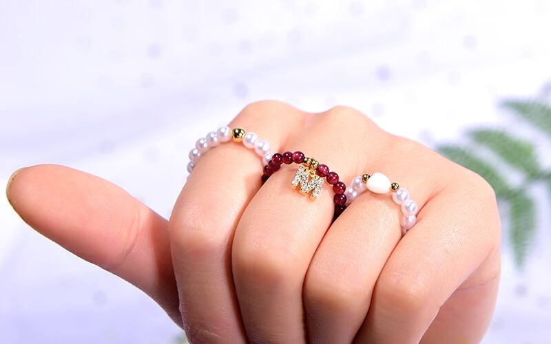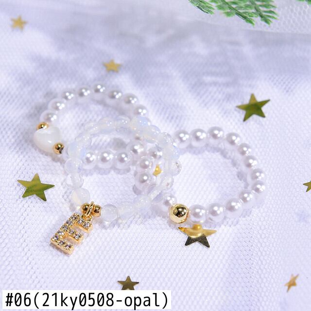 送料無料 3個/ロット天然石レディースリングカスタムイニシャル名伸縮性のあるシミュレートされた真珠調節可能な積み重ね可能な女の子のパーティーリング アジャスタブル ナチュラル 指輪 パール 人工 アクセサリー AE665591701216434
