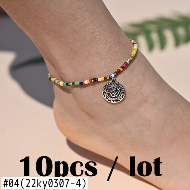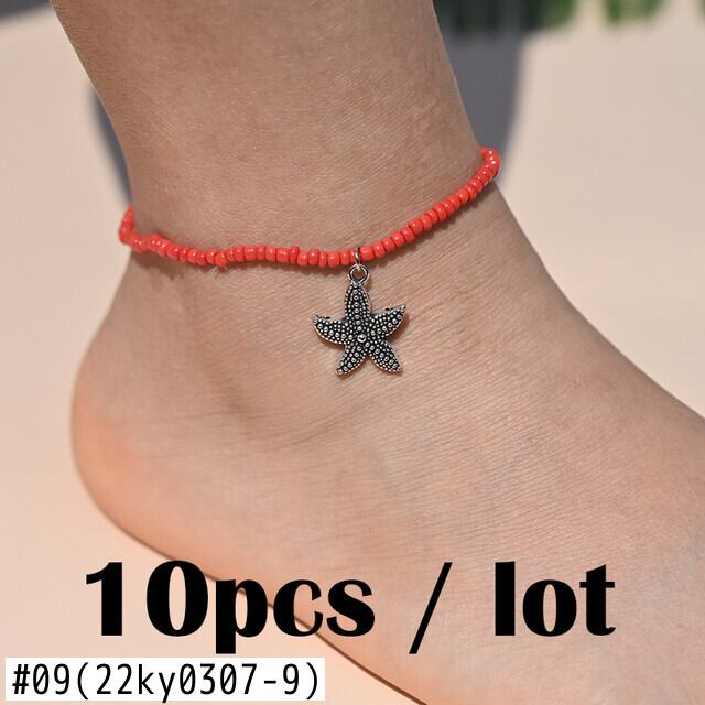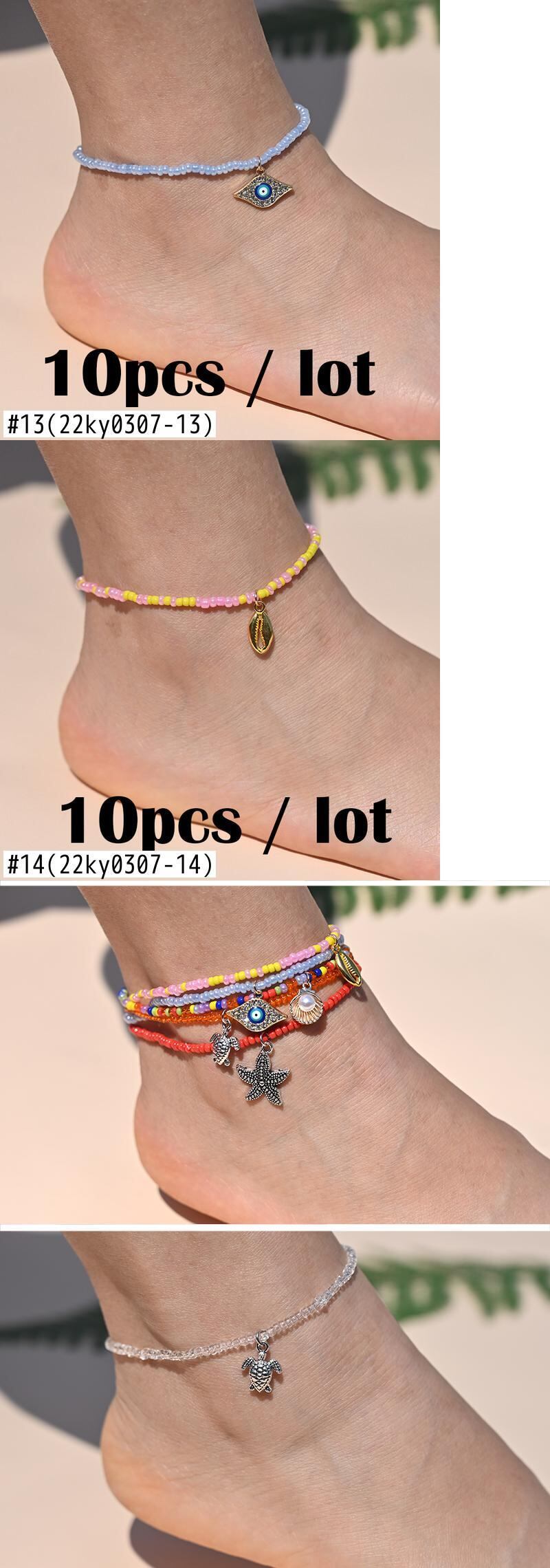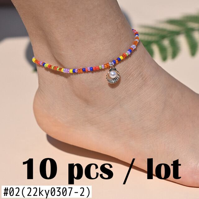 送料無料 10PCSレインボービーズアンクルブレスレットレディースビーズシェルスターフィッシュペンダントレッグチェーンアンクレットセットストラップフレンドシップビーチジュエリー アクセサリー AE665543218917573