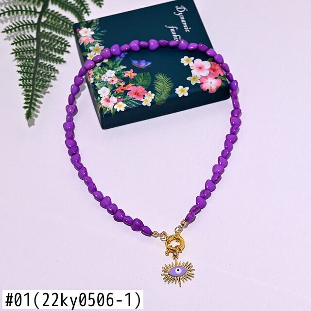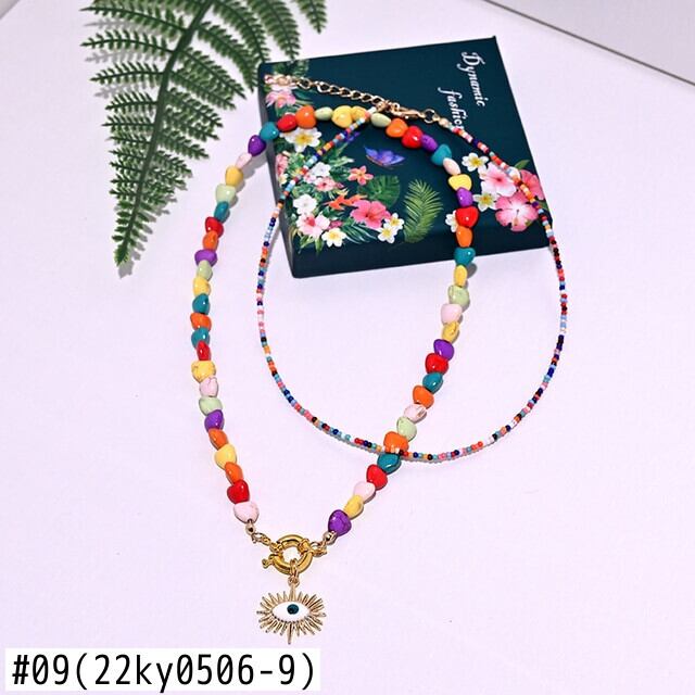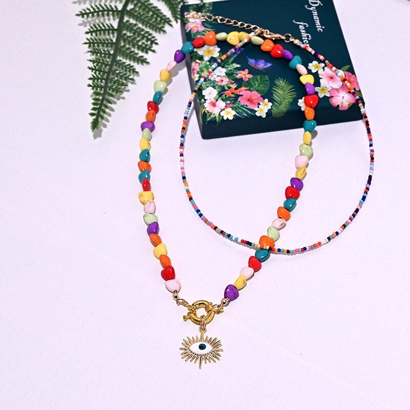 送料無料 カラフルなハートチョーカーネックレス女性ボヘミアンシードビーズアイペンダントネックレスサマージュエリーMOONGIRL レース 夏物 アクセサリー AE665570667437432