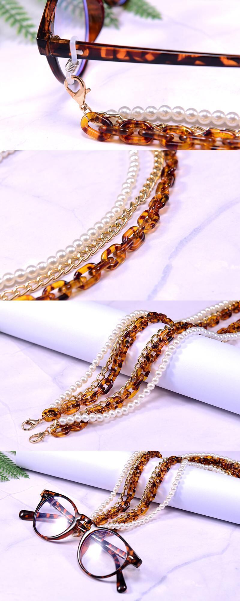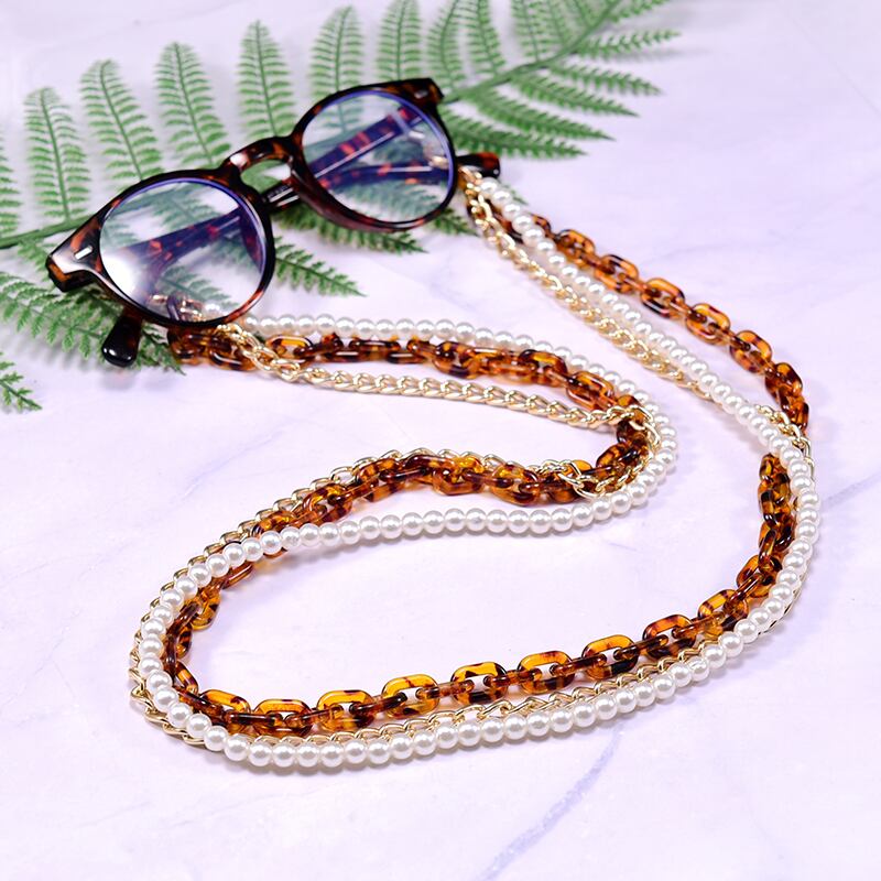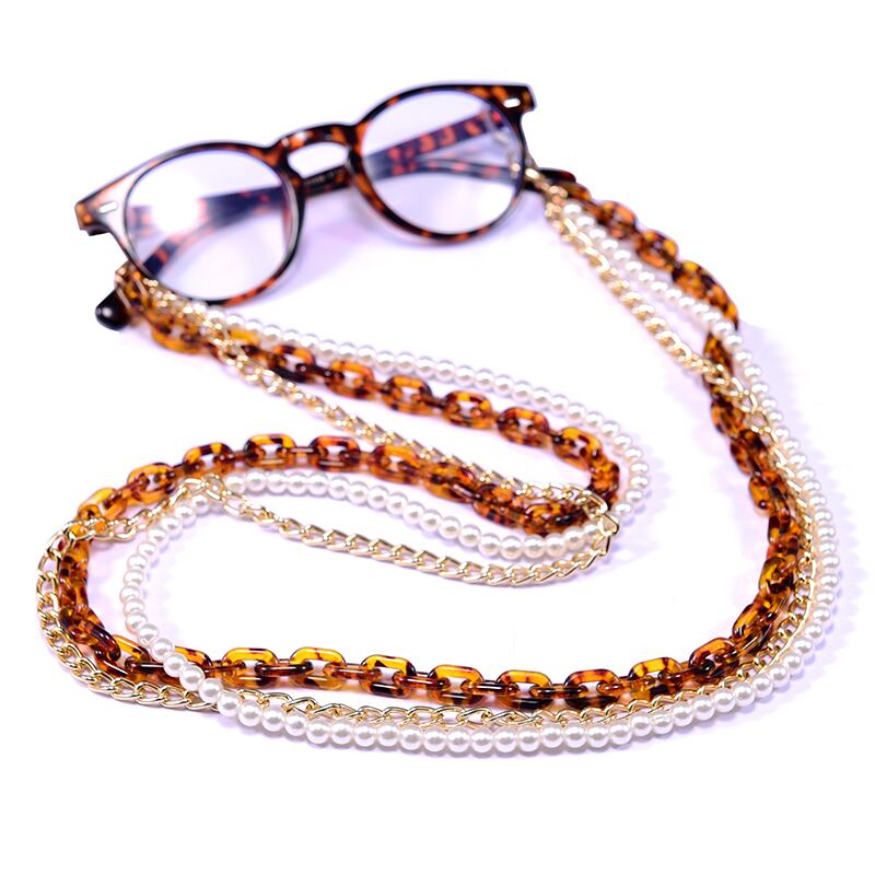 送料無料 多層アクリルグレスチェーン女性パールヒョウトレンディなストラップメタルSunglsesストラップコードハンギングネックホルダー 真珠 アクセサリー AE665535393961168
