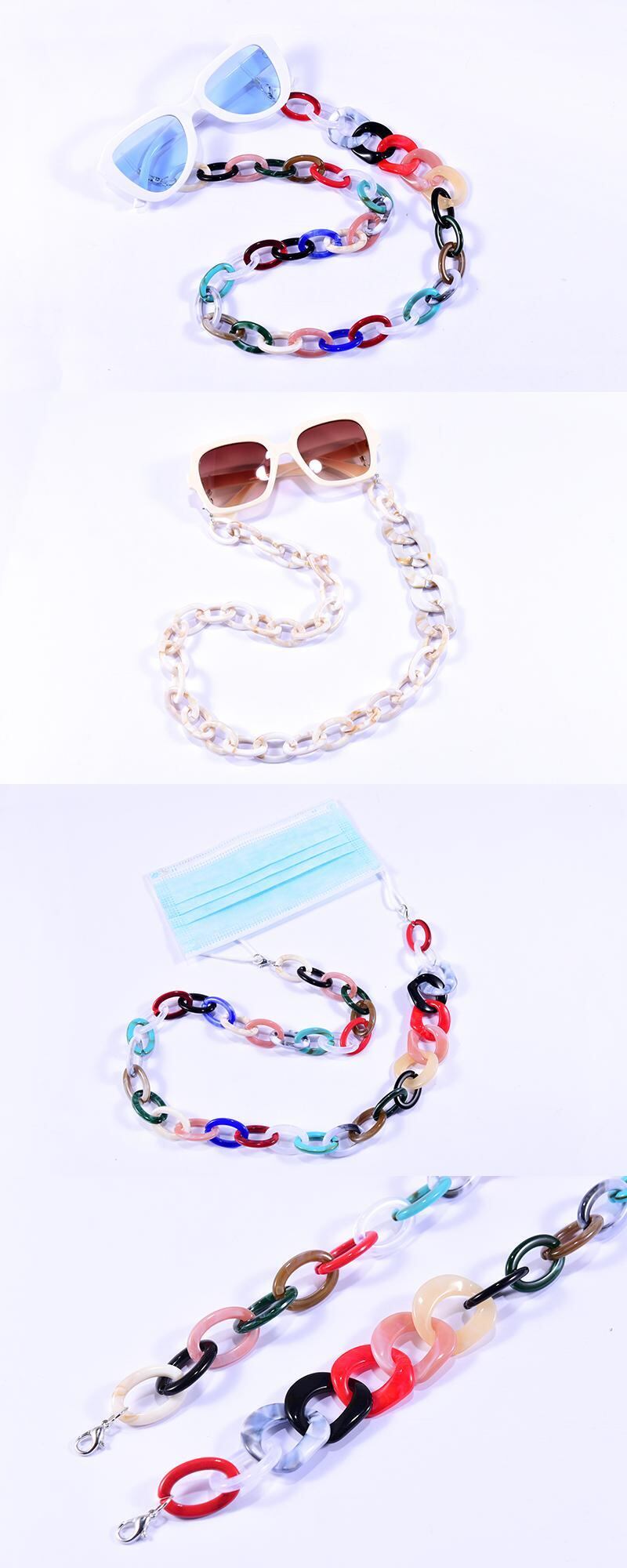 送料無料 幾何学的な大きなアクリルサングルチェーン女性トレンディなアイウェア読書Glesハンギングネックチェーンストラップホルダー アクセサリー AE665590971773073