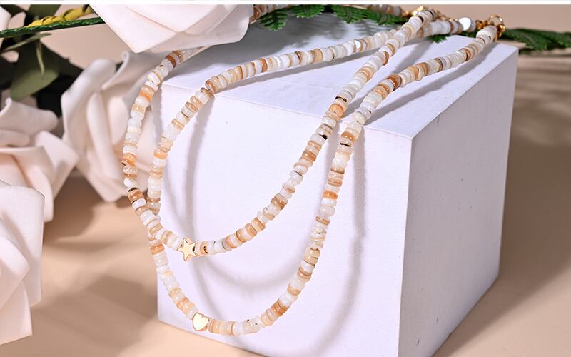 送料無料 MOONGIRLゴールデンスターチョーカーネックレスレディースジュエリーはステンレススチールチェーンと4mmシェルビーズを使用 レース アクセサリー AE665597408261103