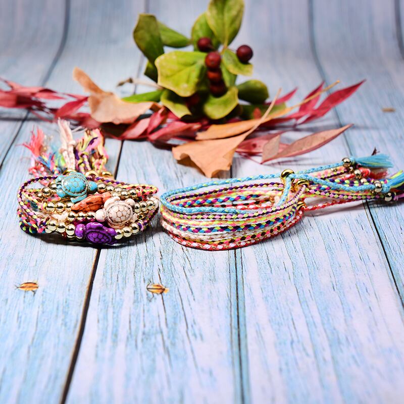送料無料 MOONGIRL編組自由奔放に生きるラップチャームブレスレット女性織りボヘミアンタートル手作りPulseras配送 アクセサリー AE665584710573426