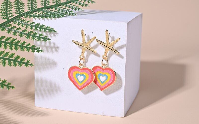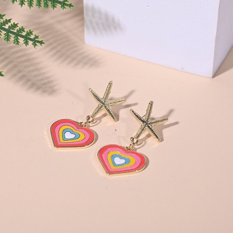 送料無料 夏のヒトデの心臓ステンレス鋼のスタッドピアス女性のアクセサリー高級ギフト金属の耳のクリップ イヤリング サマー 夏物 リング 指輪 アクセサリー AE665567197161192