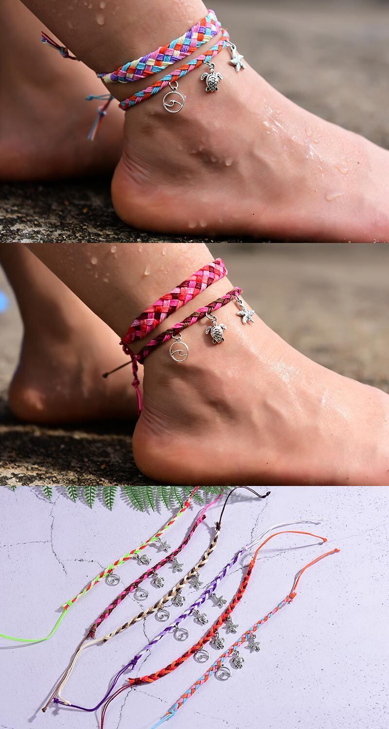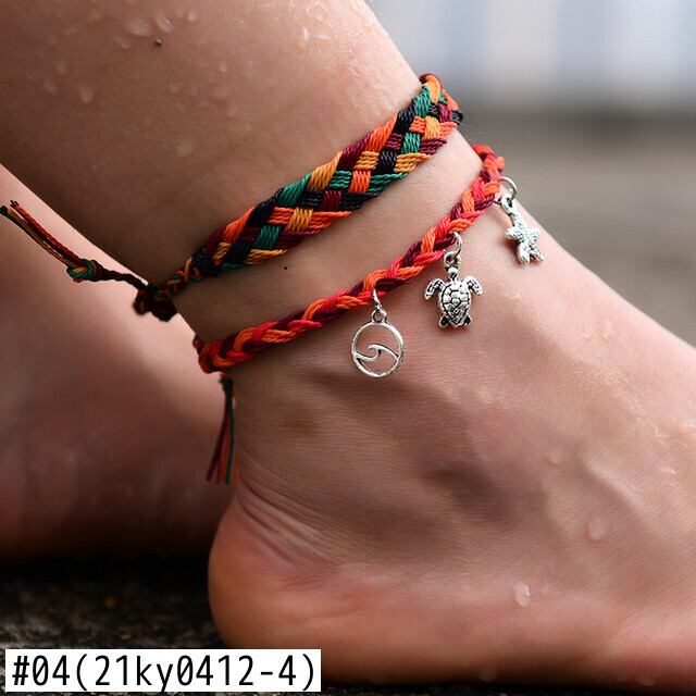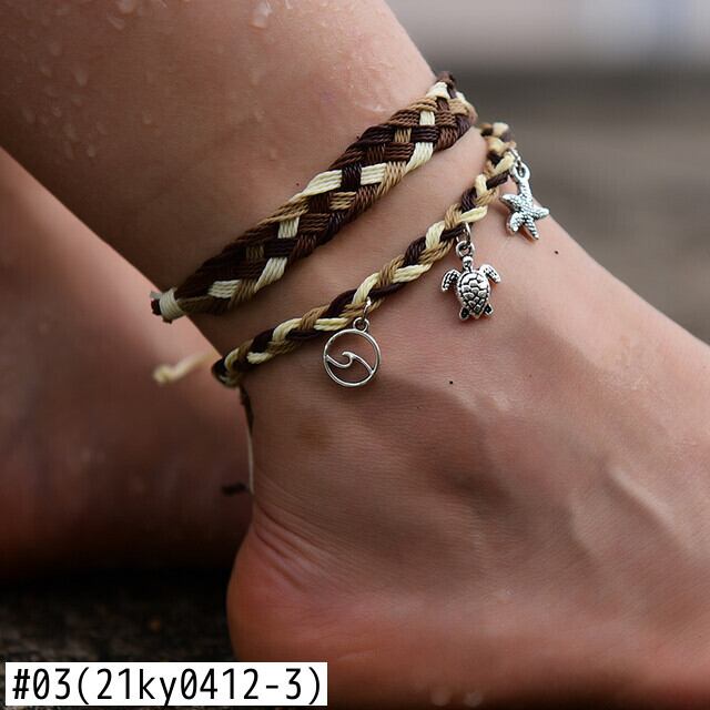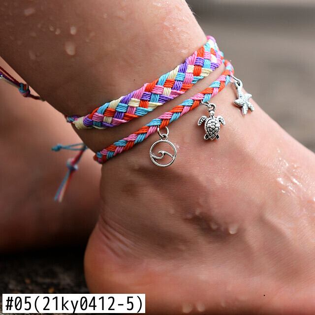 送料無料 2個/ロット防水アンクレットレディースウェーブタートルスターフィッシュビーチ裸足トレンディなブレスレットレッグチェーン自由奔放に生きるフットジュエリー アクセサリー AE665588589384478