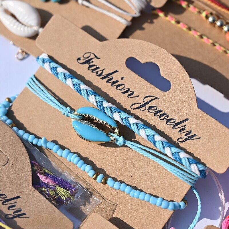送料無料 手作り織りブレスレットセット女性グラマーボヘミアンウミガメクロスシェル調節可能なブレスレット2022トレンド アジャスタブル アクセサリー AE665554178413867