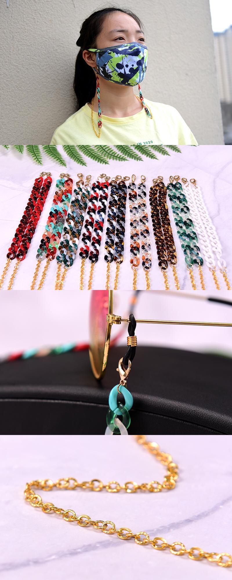 送料無料 MOONGIRLゴールドメッキアクリルGlesチェーン女性滑り止め読書アイウェアコードマスクホルダーネックストラップストラップ船 アクセサリー AE665589680723071