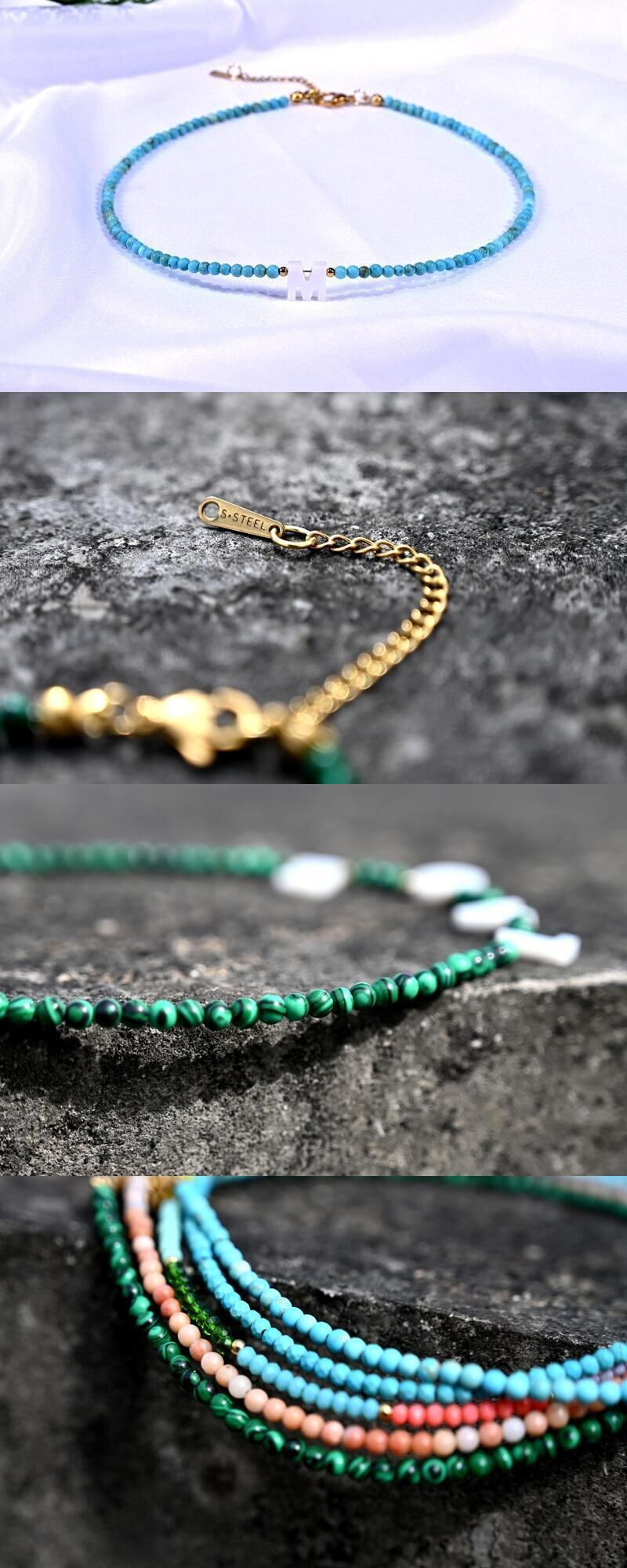 生地,素材:natural stone, shell letter,stainless steel beads