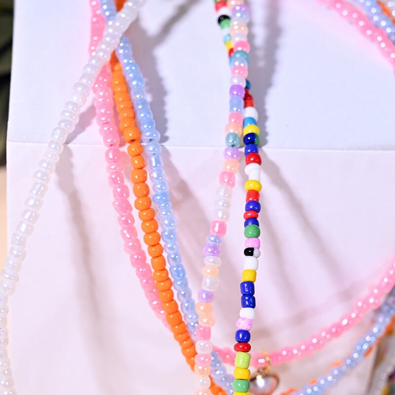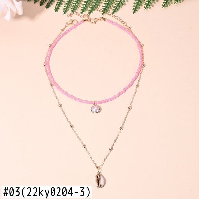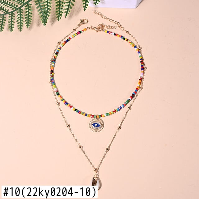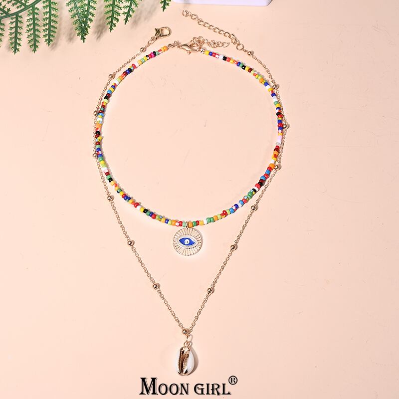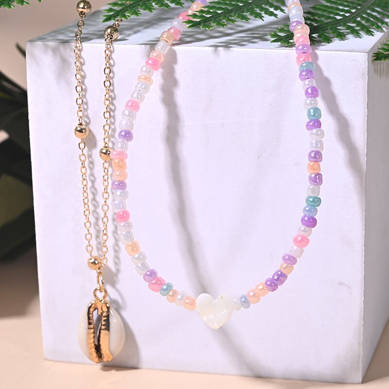 送料無料 2ピースマルチカラースモールビーズハートマルチレイヤーチョーカーシェルペンダントネックレス女性ムーンガールジュエリー レース アクセサリー AE665563951434683
