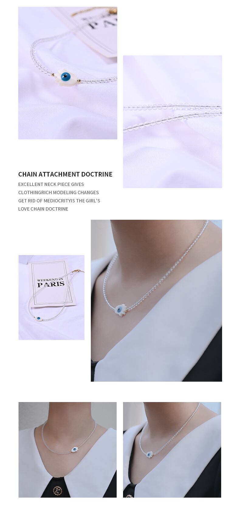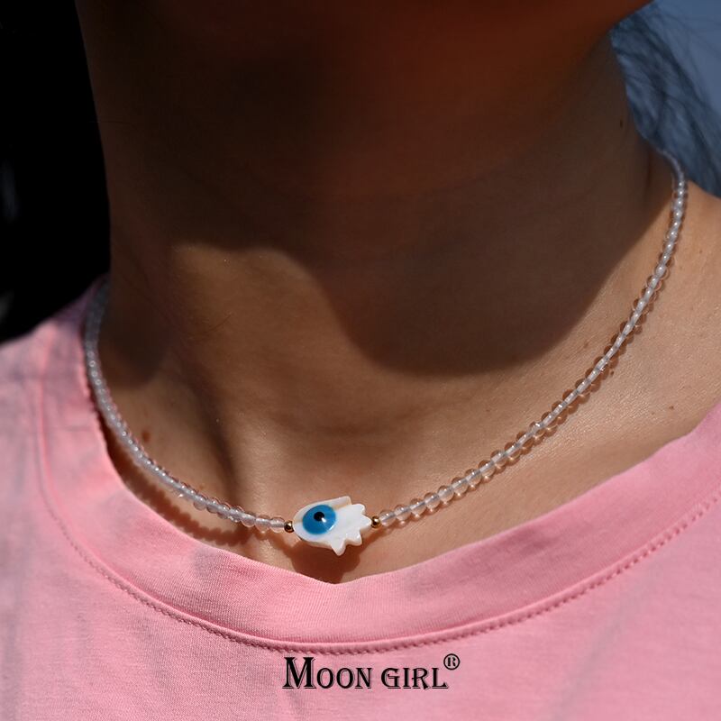 送料無料 3MMホワイトクリスタルネックレス女性シェルトルコの邪眼チョーカージュエリー自由奔放に生きるステンレス鋼ストリートウェアコリアー レース アクセサリー AE665517299601688