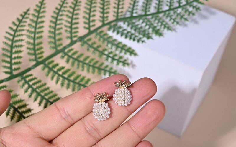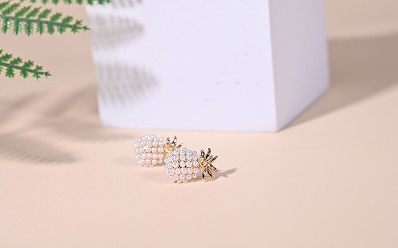 送料無料 クリエイティブパイナップルパールスタッドピアス女性メタルサマーラグジュアリーギフトステンレススチールイヤークリップ イヤリング 夏物 真珠 リング 指輪 アクセサリー AE665582574115764