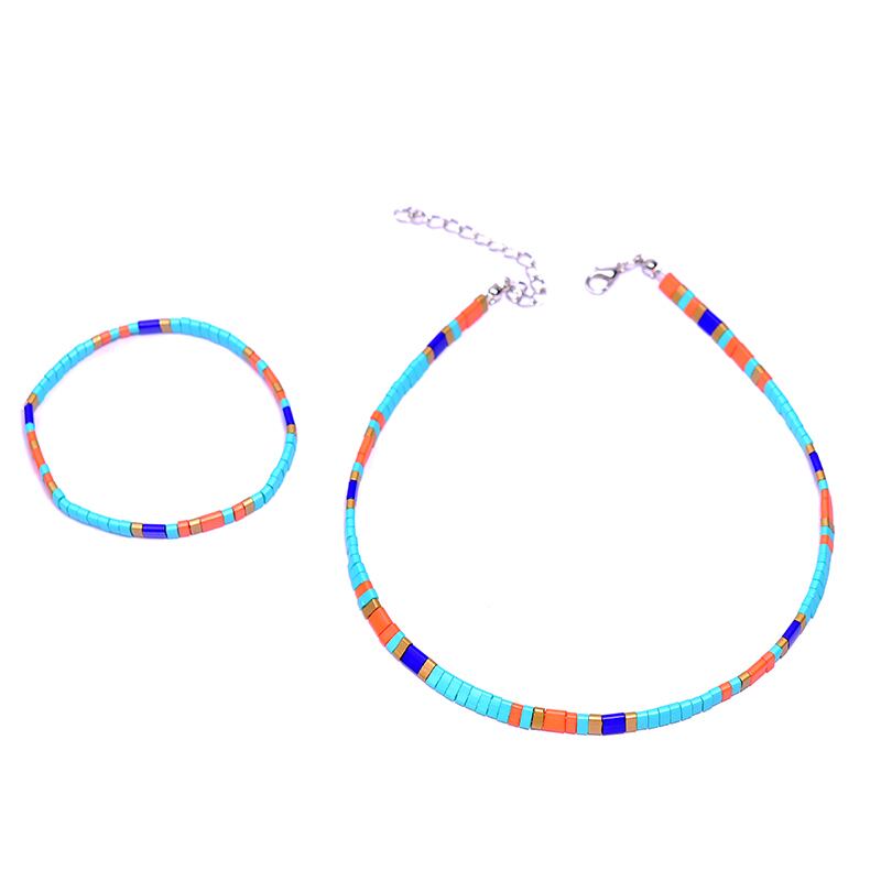 送料無料 MOONGIRLみゆきチョーカーネックレスティラビーズブレスレット女性自由奔放に生きるエラスティックチャームPulserasジュエリーセット発送 レース 伸縮 アクセサリー AE665514964534385