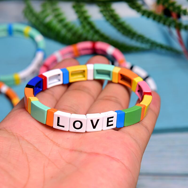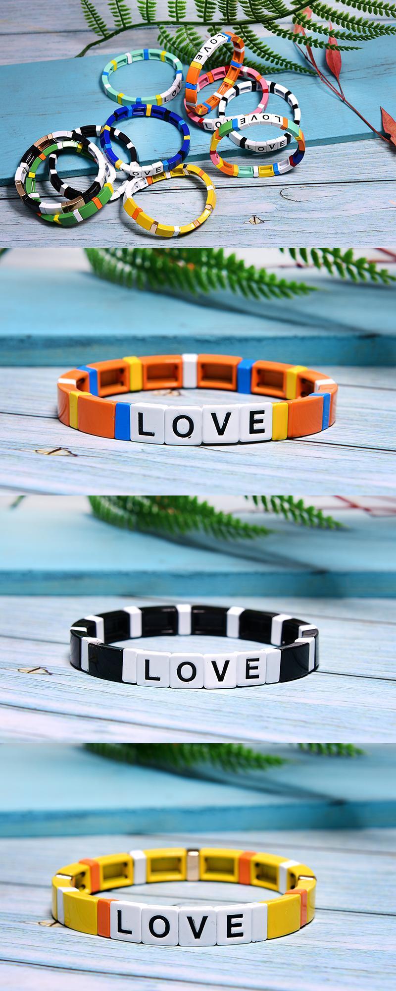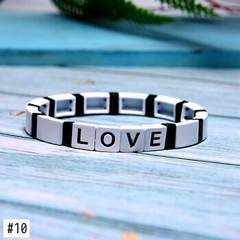 送料無料 MOONGIRLスタッカブルレターエナメルブレスレットストレッチバングルレディースメンズシックチャームパルセラス発送 アクセサリー AE665541257295861